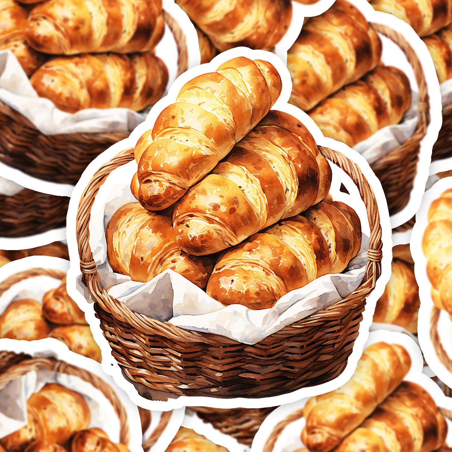 Set 5 bucati, Sticker decorativ, Cos de nuiele cu paine proaspata, Rezistent la apa, NO11396, 6 cm, Multicolor