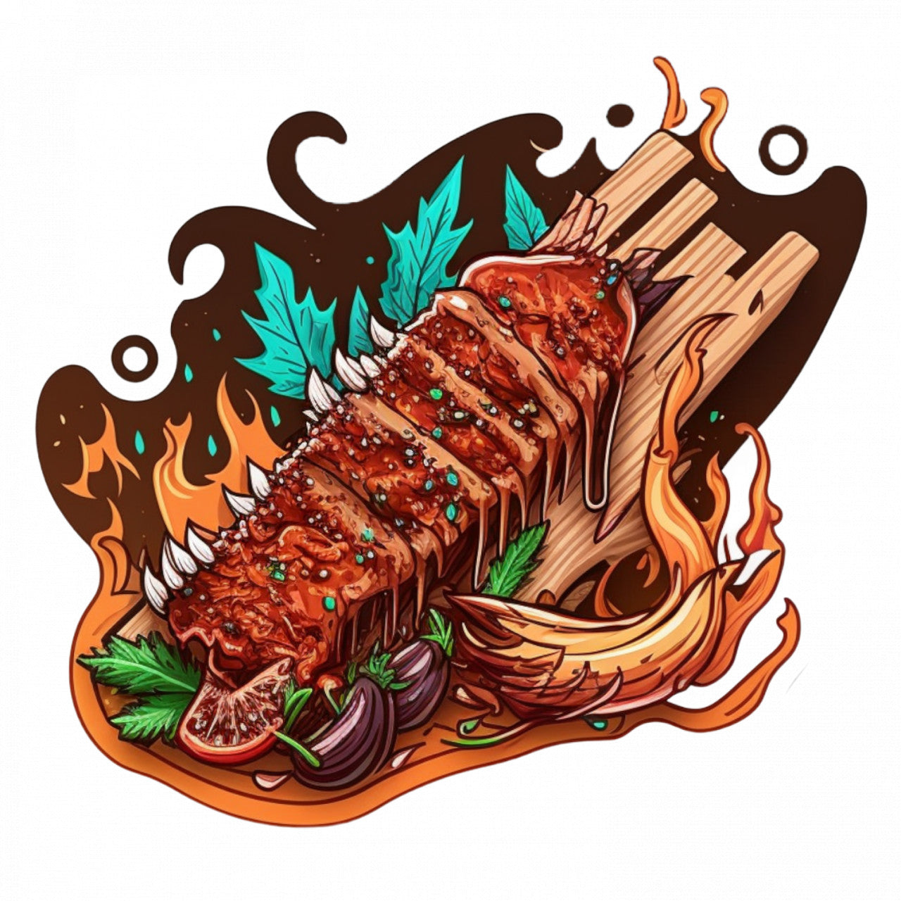 Set 5 bucati, Sticker decorativ, Costite ;a gratar, Rezistent la apa, NO8916, 6 cm, Multicolor