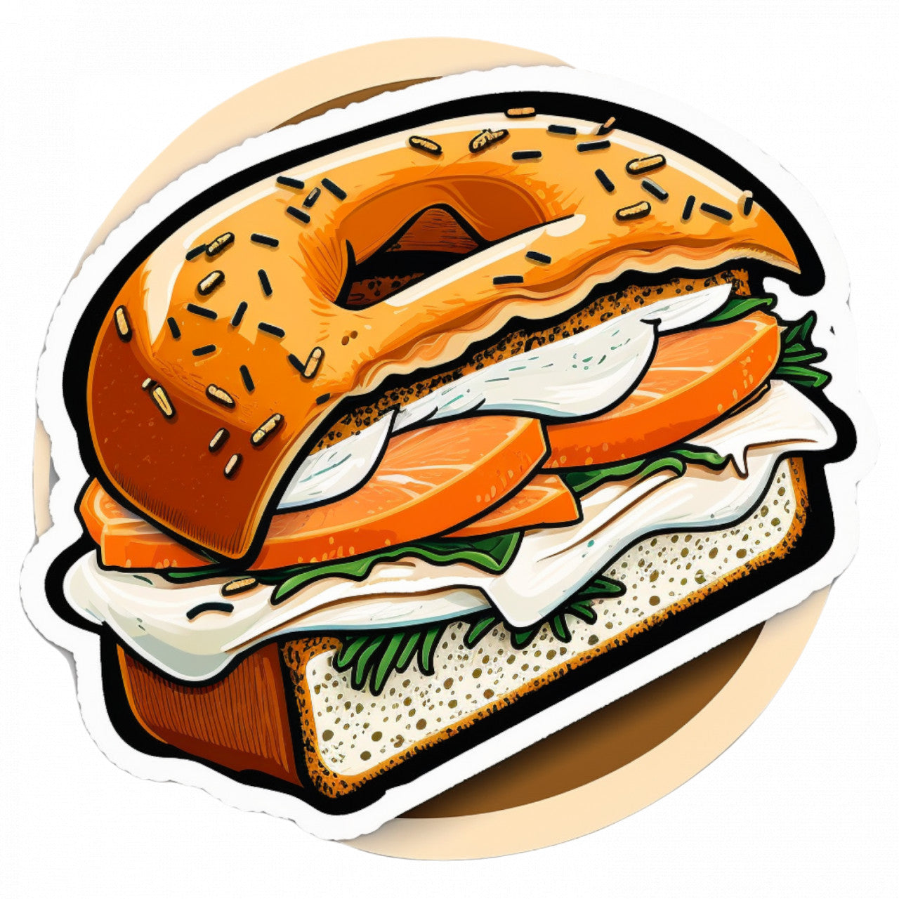 Set 5 bucati, Sticker decorativ, Covrig cu sunca si branza, Rezistent la apa, NO8920, 6 cm, Multicolor