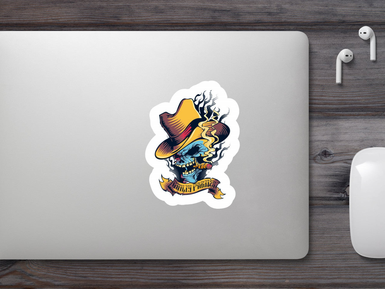 Set 5 bucati, Sticker decorativ, Craniu cu palarie, Rezistent la apa, NO8925, 6 cm, Multicolor