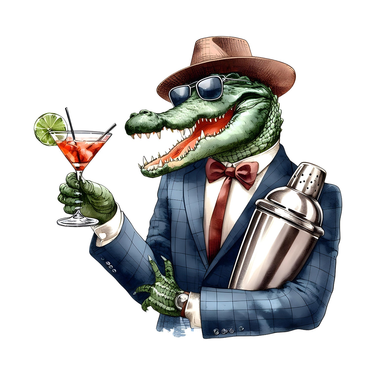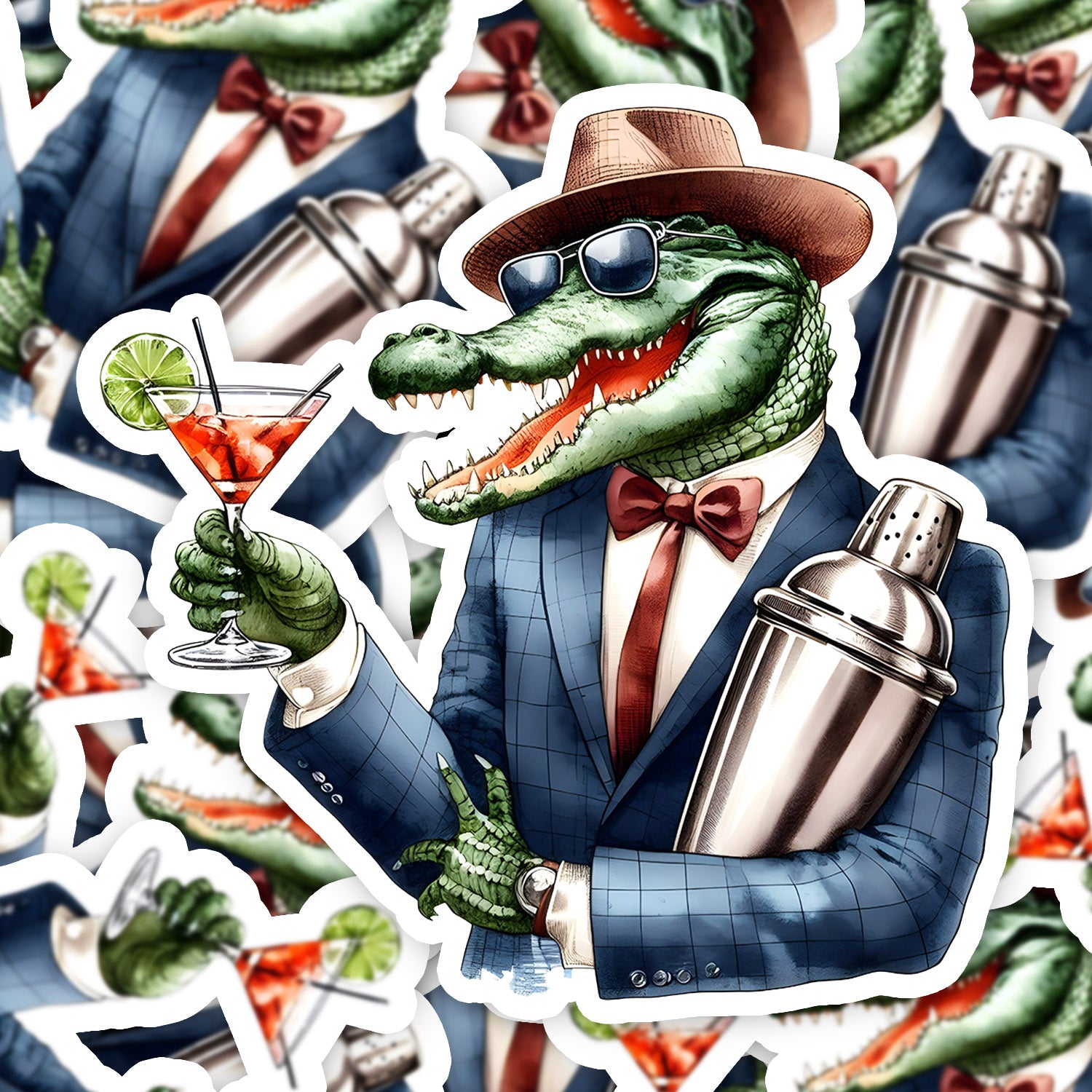 Set 5 bucati, Sticker decorativ, Crocodilul barman, Rezistent la apa, NO16192, 6 cm, Multicolor