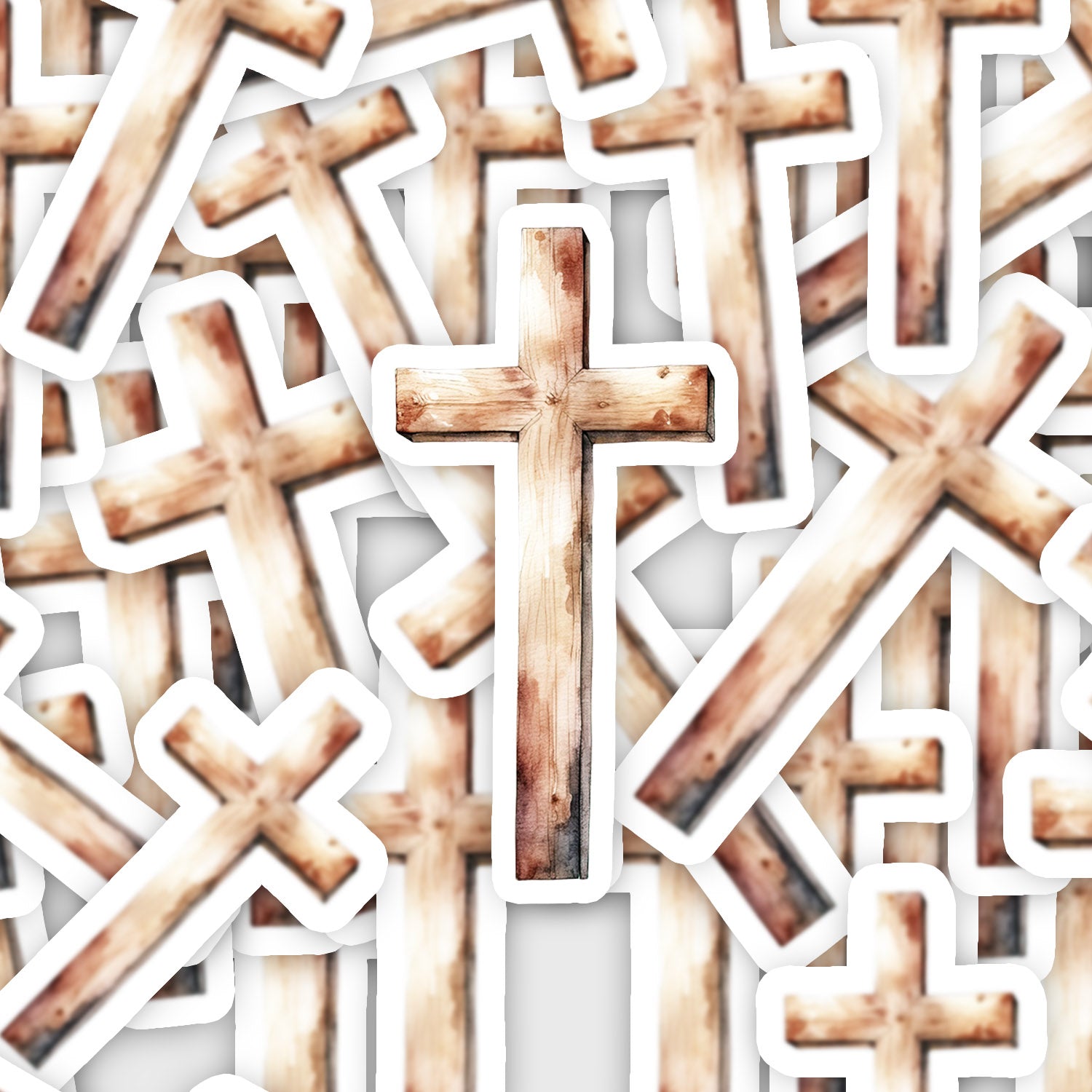 Set 5 bucati, Sticker decorativ, Cruce de lemn, Rezistent la apa, NO16288, 6 cm, Multicolor
