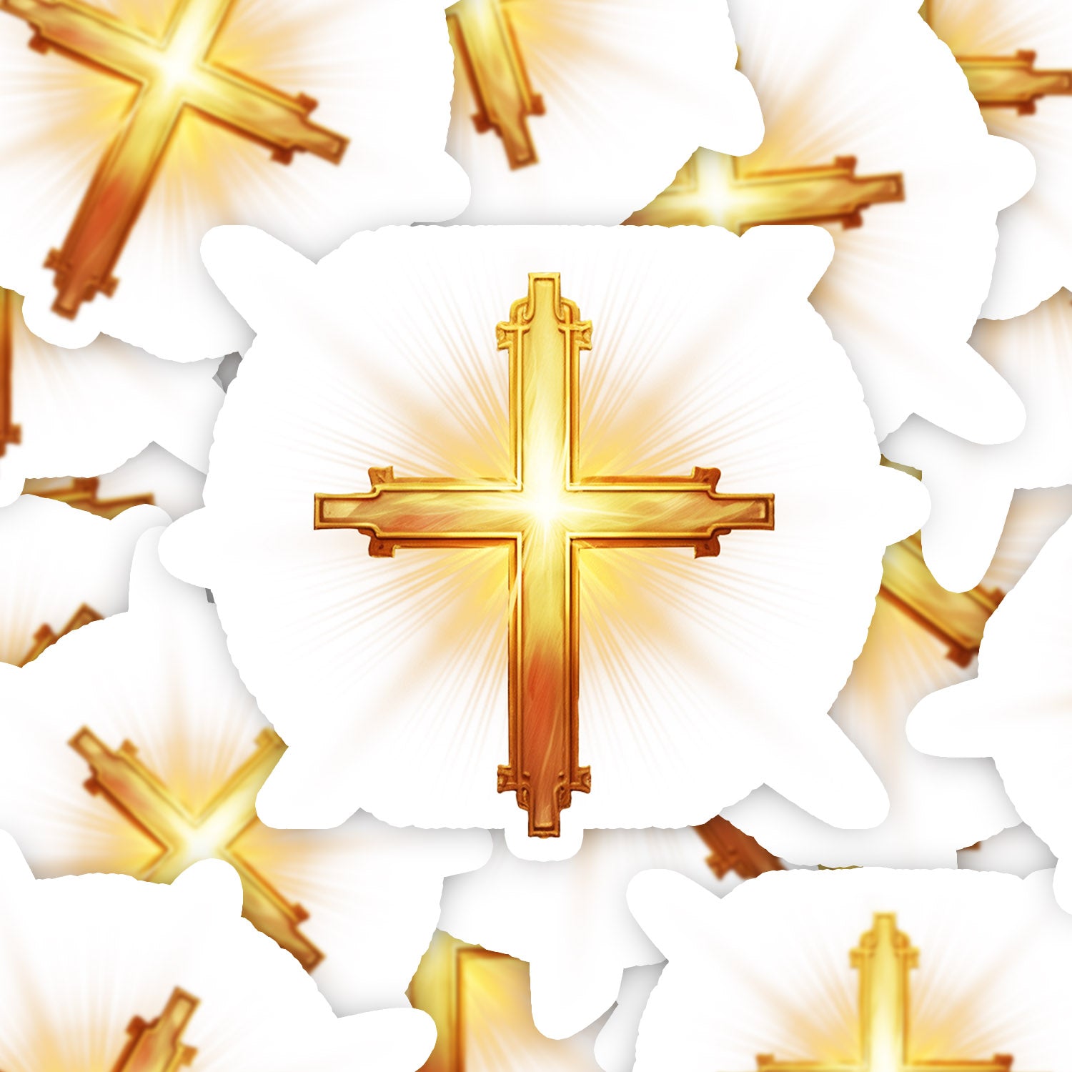 Set 5 bucati, Sticker decorativ, Crucea de aur, Rezistent la apa, NO11434, 6 cm, Multicolor