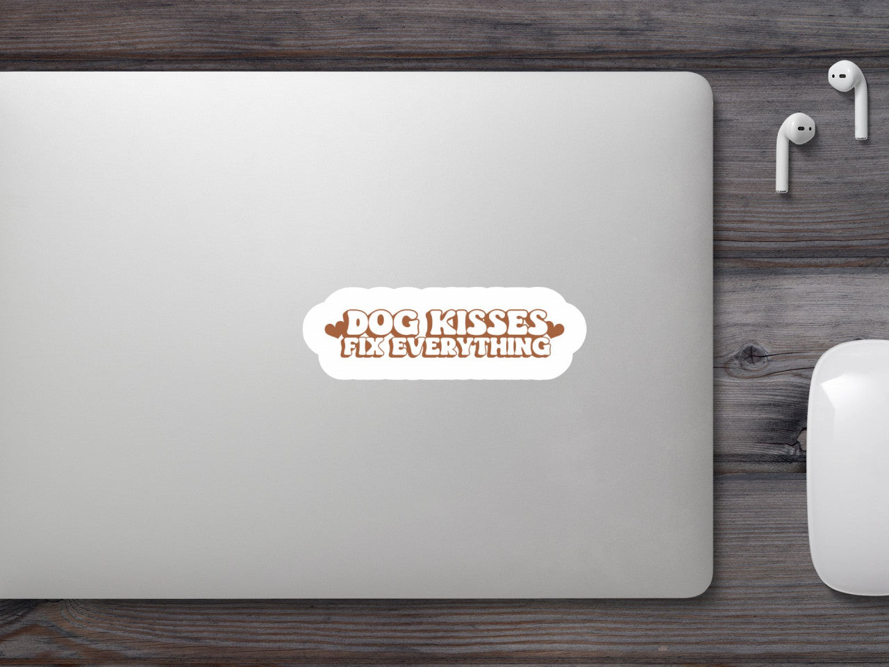 Set 5 bucati, Sticker decorativ, Dog kisses fix everything, Rezistent la apa, NO9054, 6 cm, Multicolor