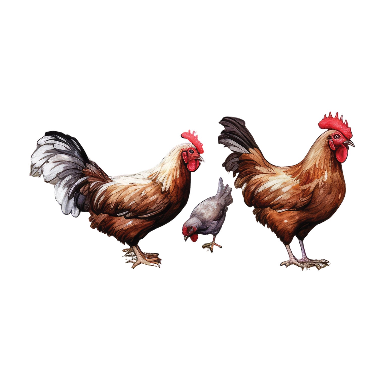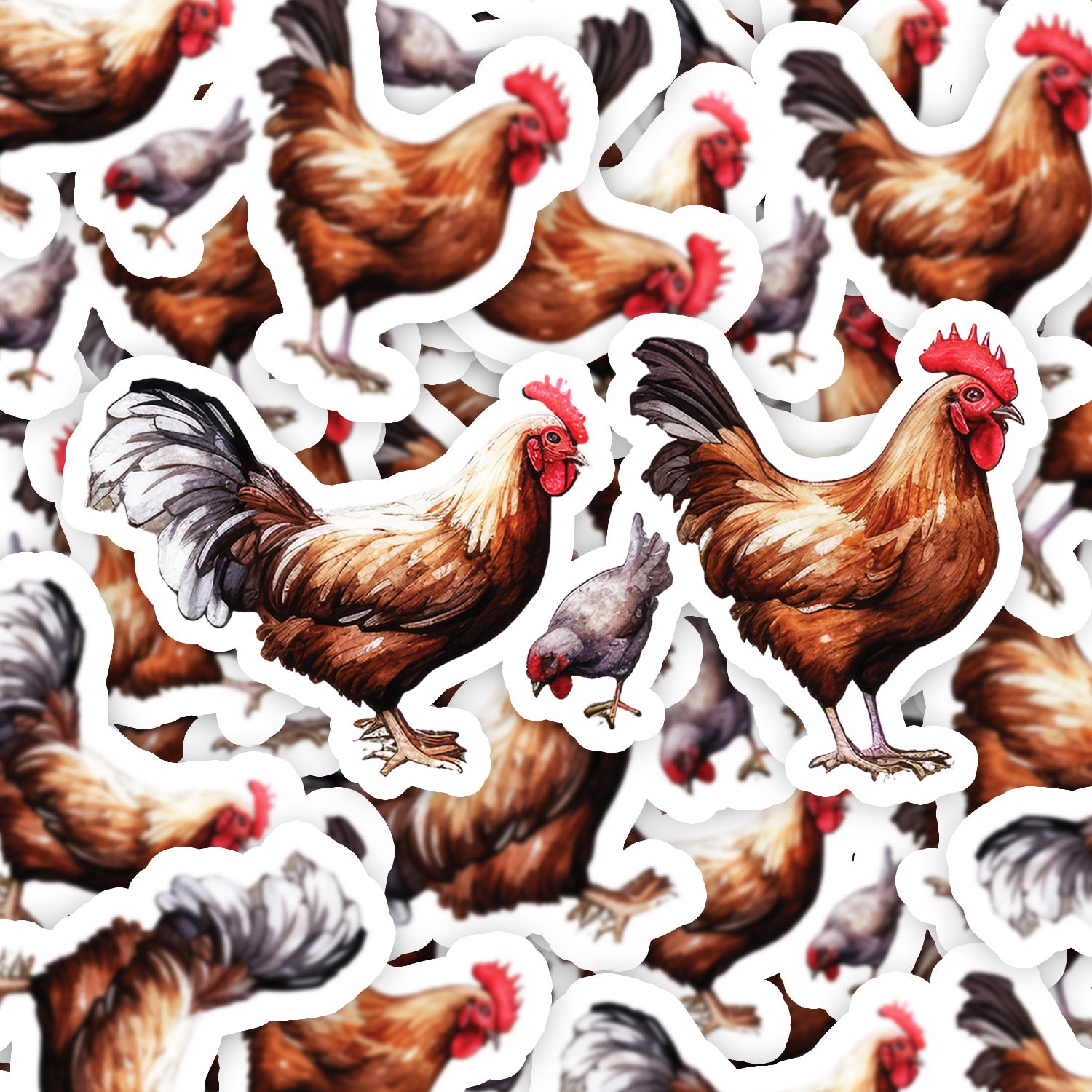 Set 5 bucati, Sticker decorativ, Doi cocosi si o gaina, Rezistent la apa, NO12344, 6 cm, Multicolor