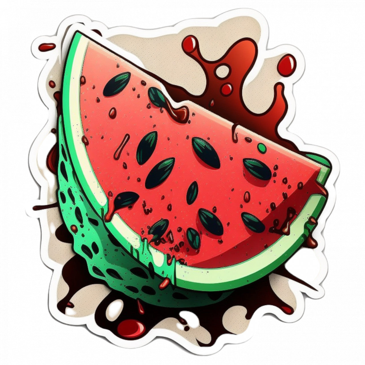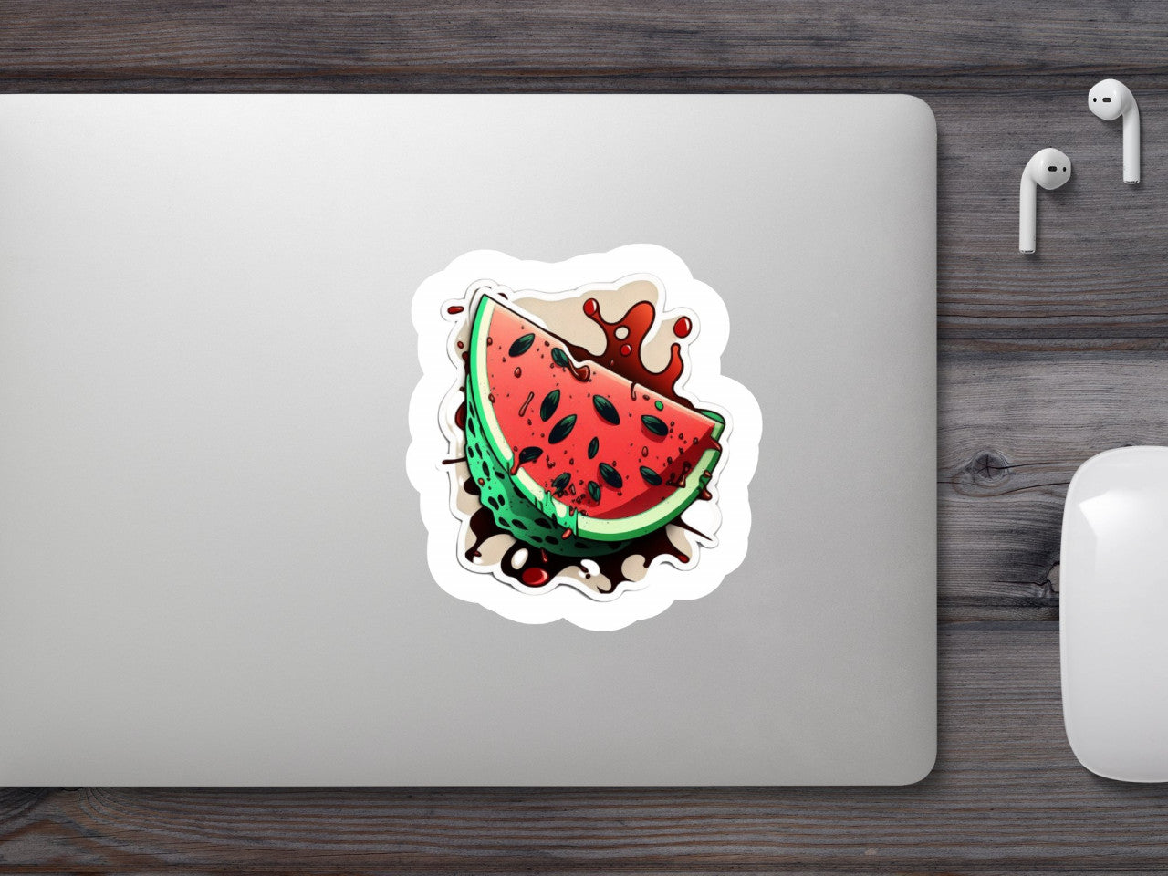 Set 5 bucati, Sticker decorativ, Felie de pepene rosu cu samburi, Rezistent la apa, NO9243, 6 cm, Multicolor