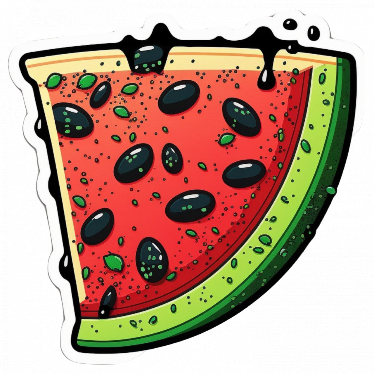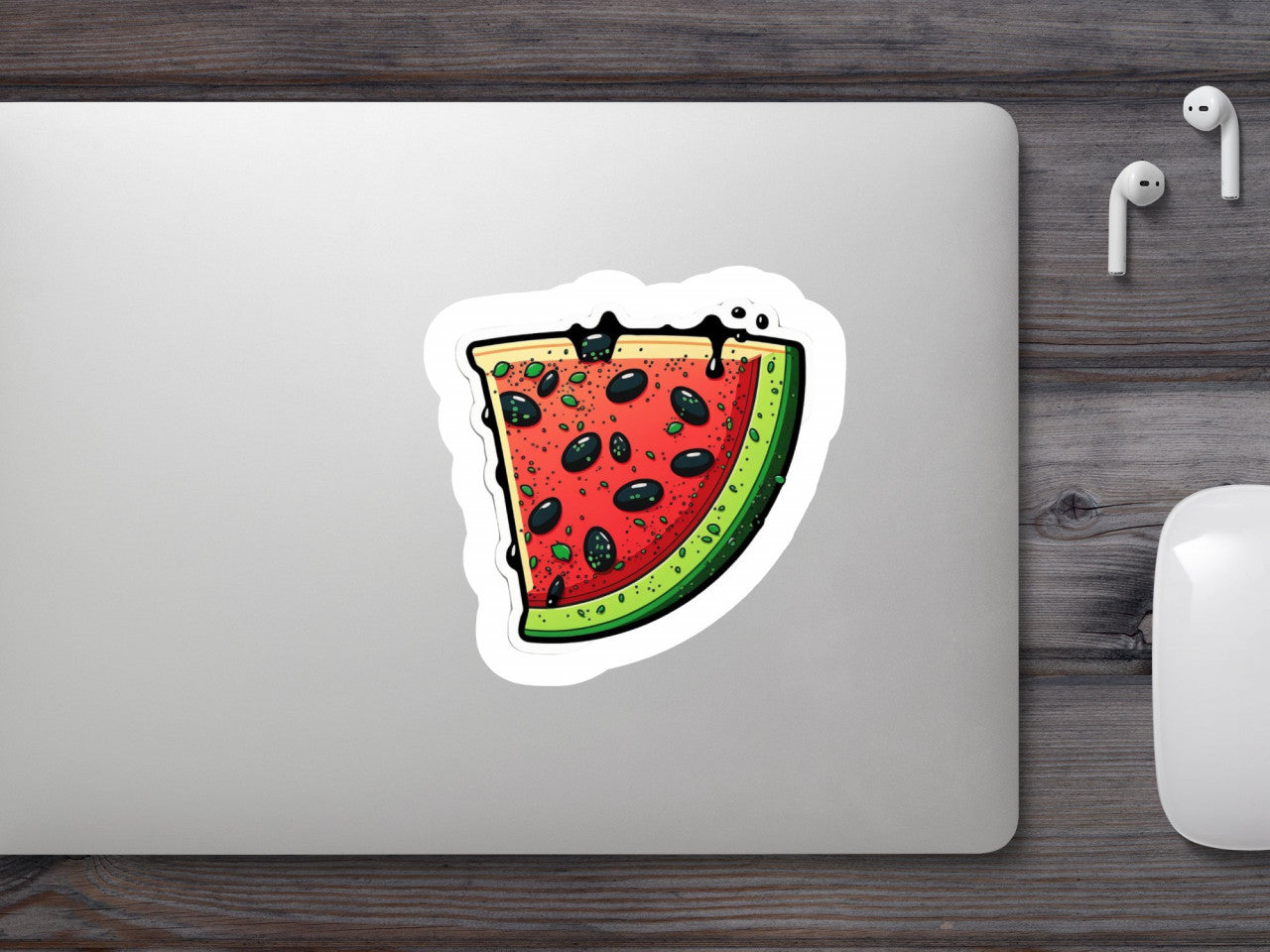 Set 5 bucati, Sticker decorativ, Felie de pepene rosu, Rezistent la apa, NO9245, 6 cm, Multicolor