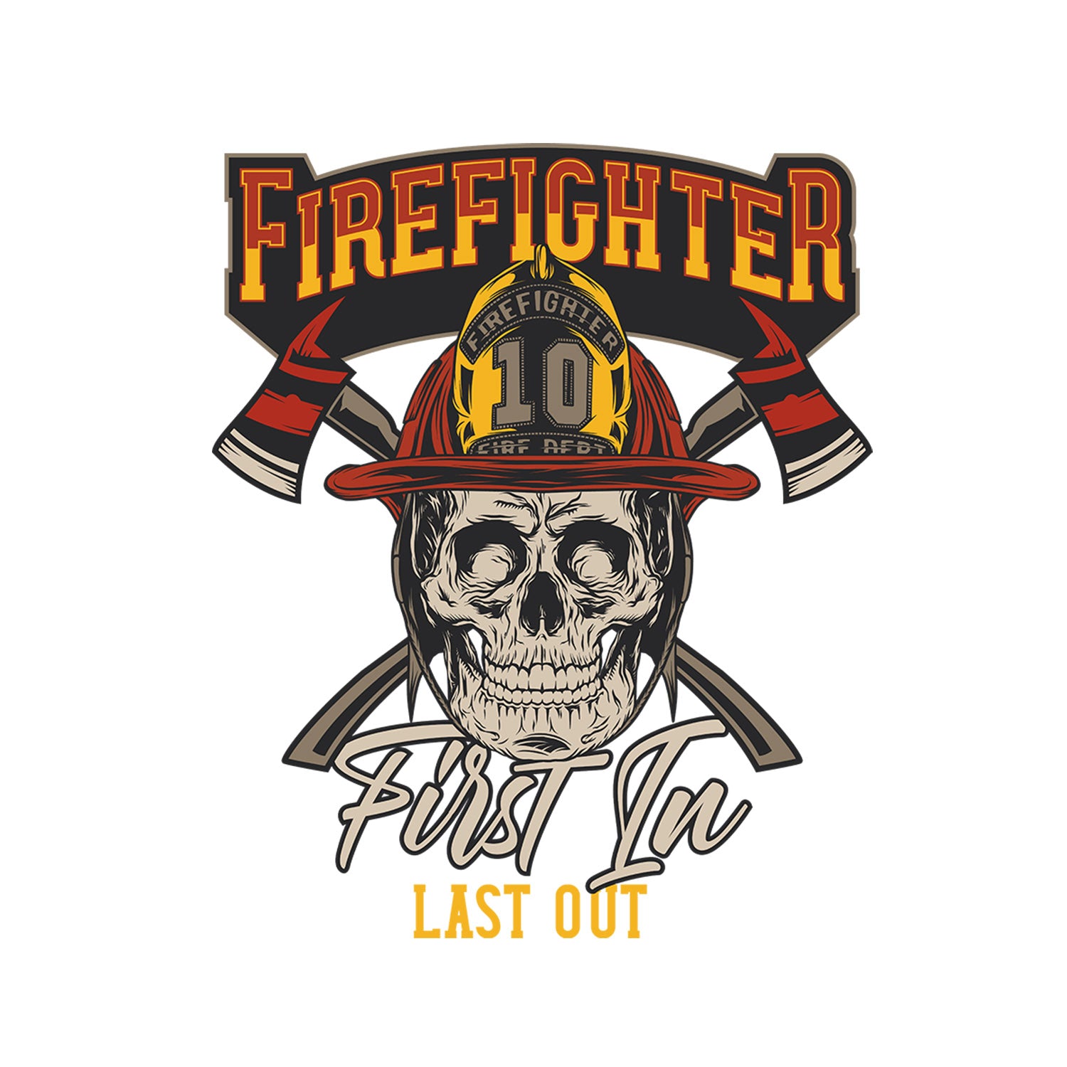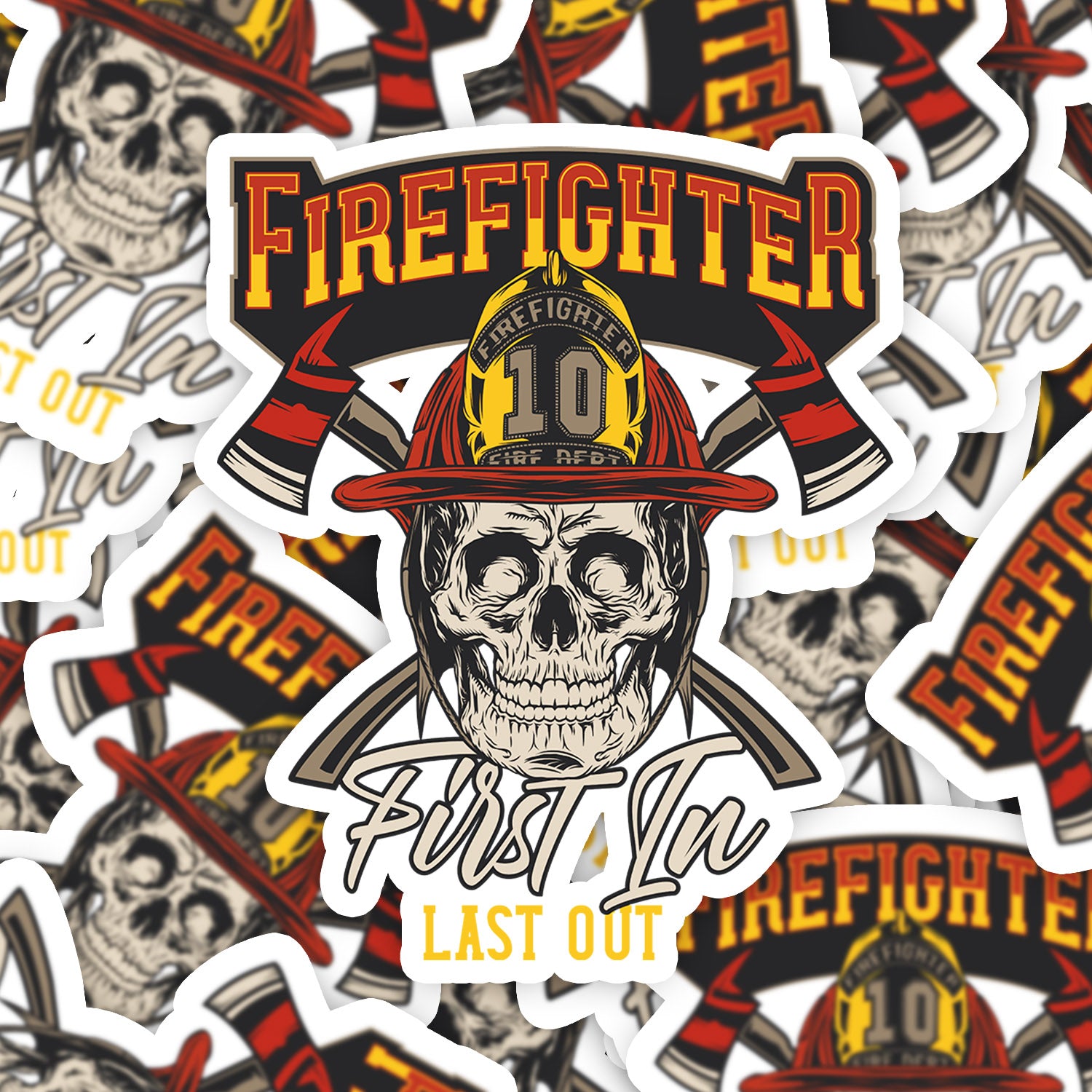 Set 5 bucati, Sticker decorativ, Firefighter first in last out, Rezistent la apa, NO14081, 6 cm, Multicolor