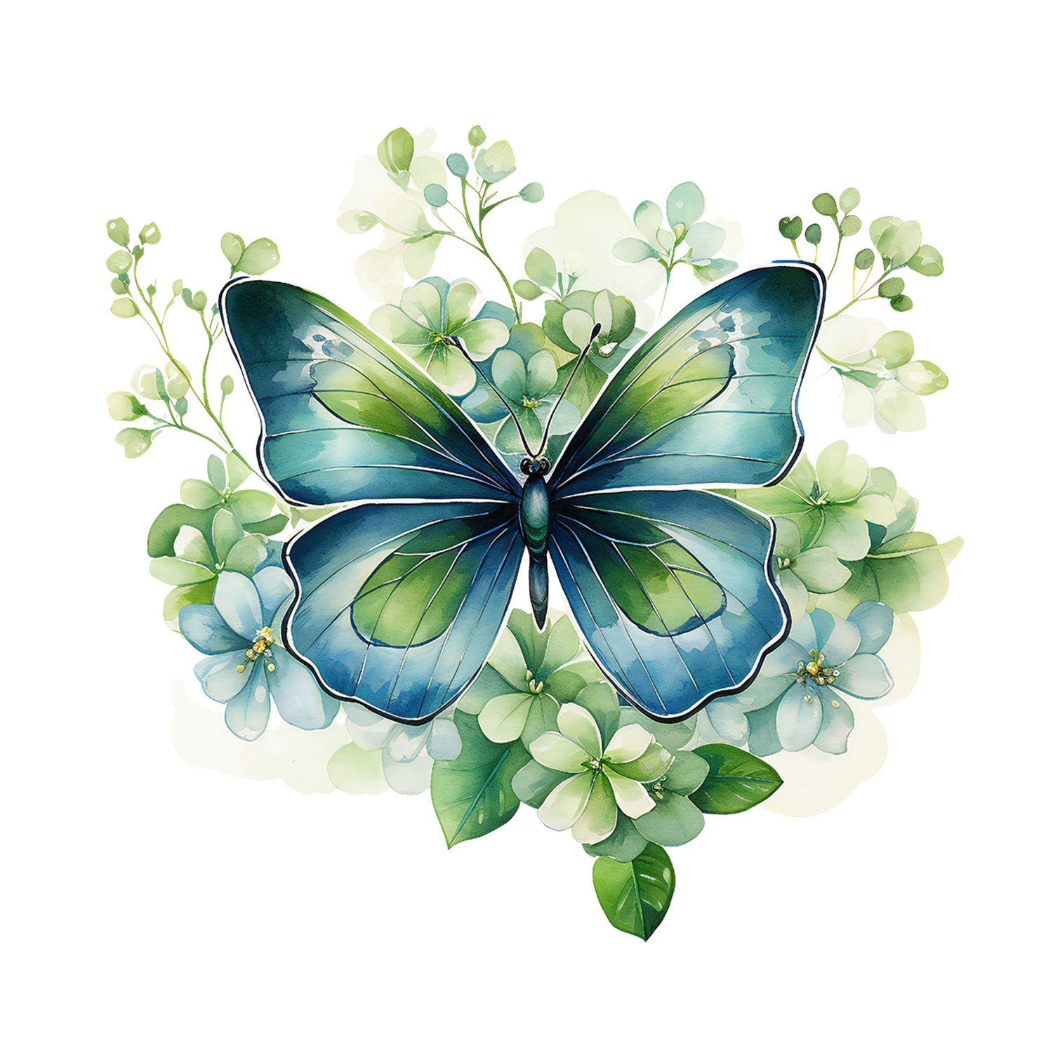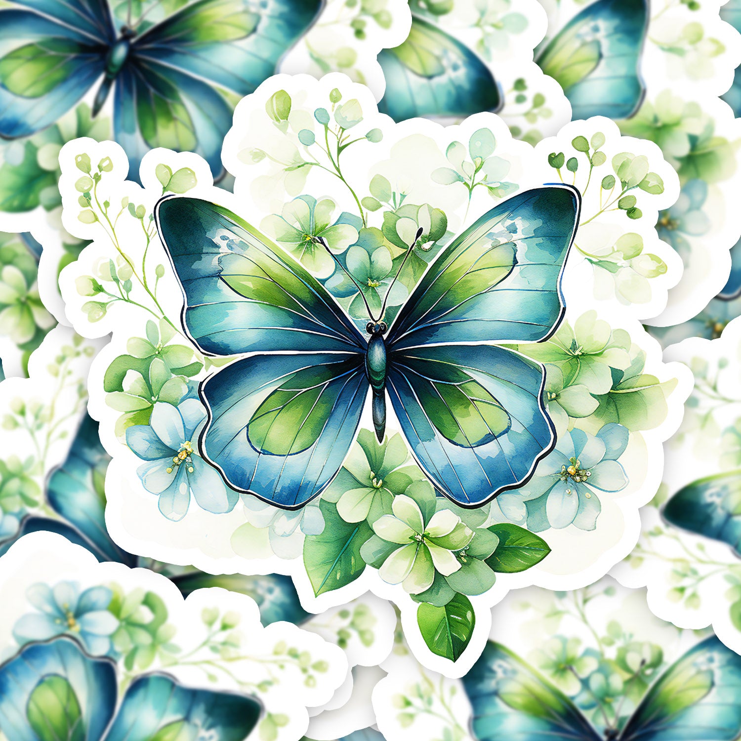Set 5 bucati, Sticker decorativ, Fluture albastru pe camp, Rezistent la apa, NO11717, 6 cm, Multicolor