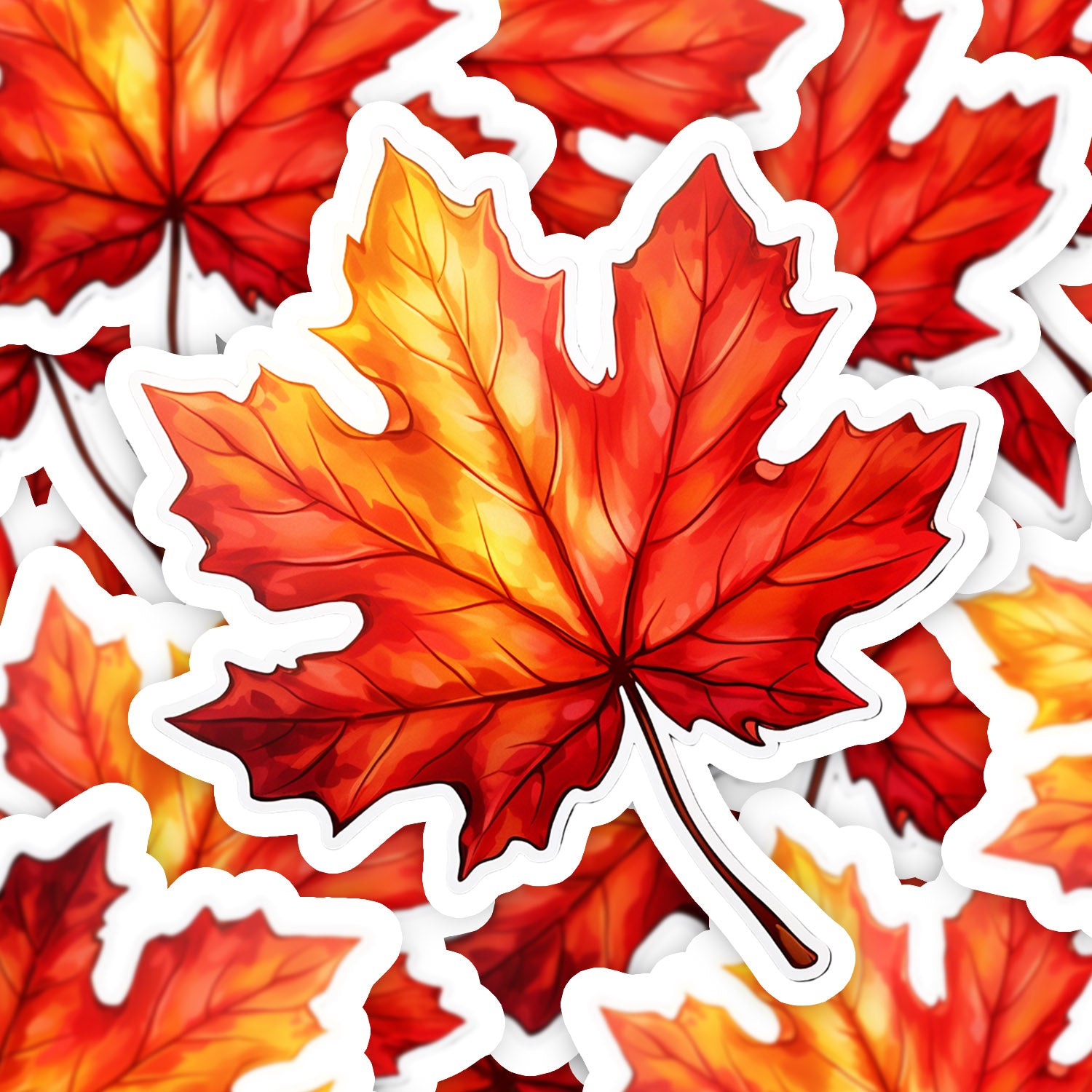 Set 5 bucati, Sticker decorativ, Frunza de toamna, Rezistent la apa, NO10715, 6 cm, Multicolor