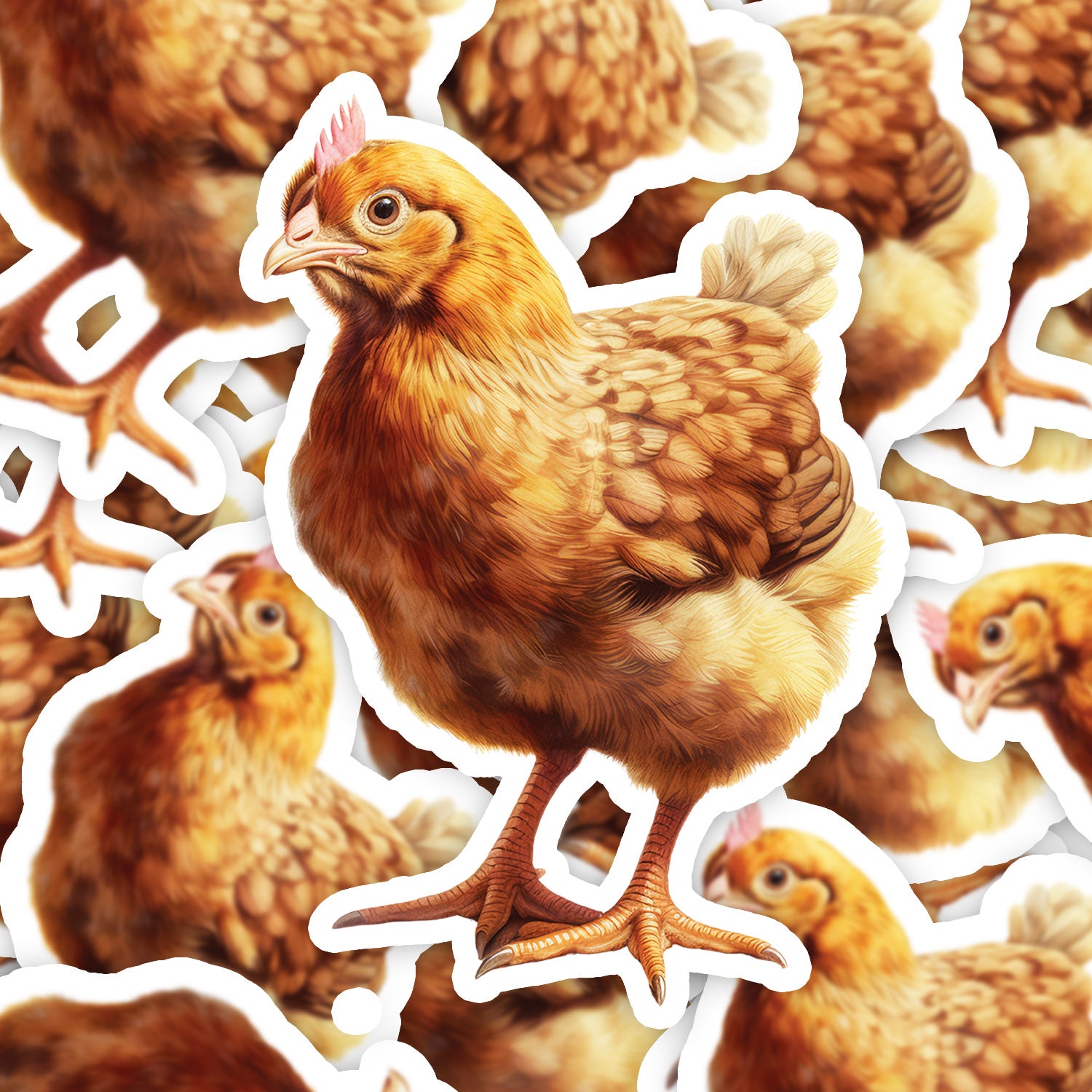 Set 5 bucati, Sticker decorativ, Gaina aurie, Rezistent la apa, NO10850, 6 cm, Multicolor