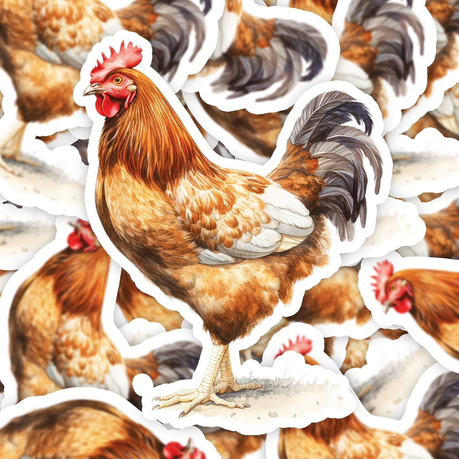 Set 5 bucati, Sticker decorativ, Gaina cu coada gri, Rezistent la apa, NO10029, 6 cm, Multicolor