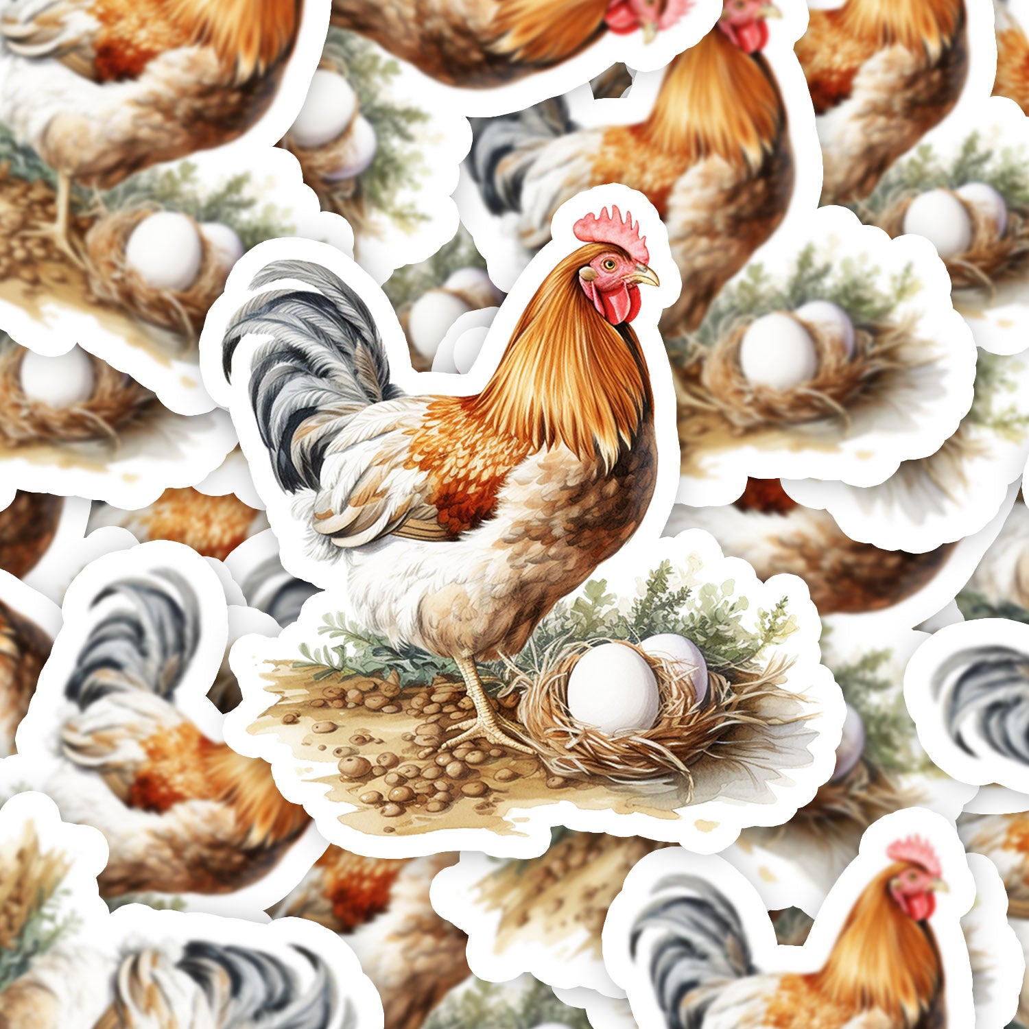 Set 5 bucati, Sticker decorativ, Gaina cu doua oua, Rezistent la apa, NO11194, 6 cm, Multicolor