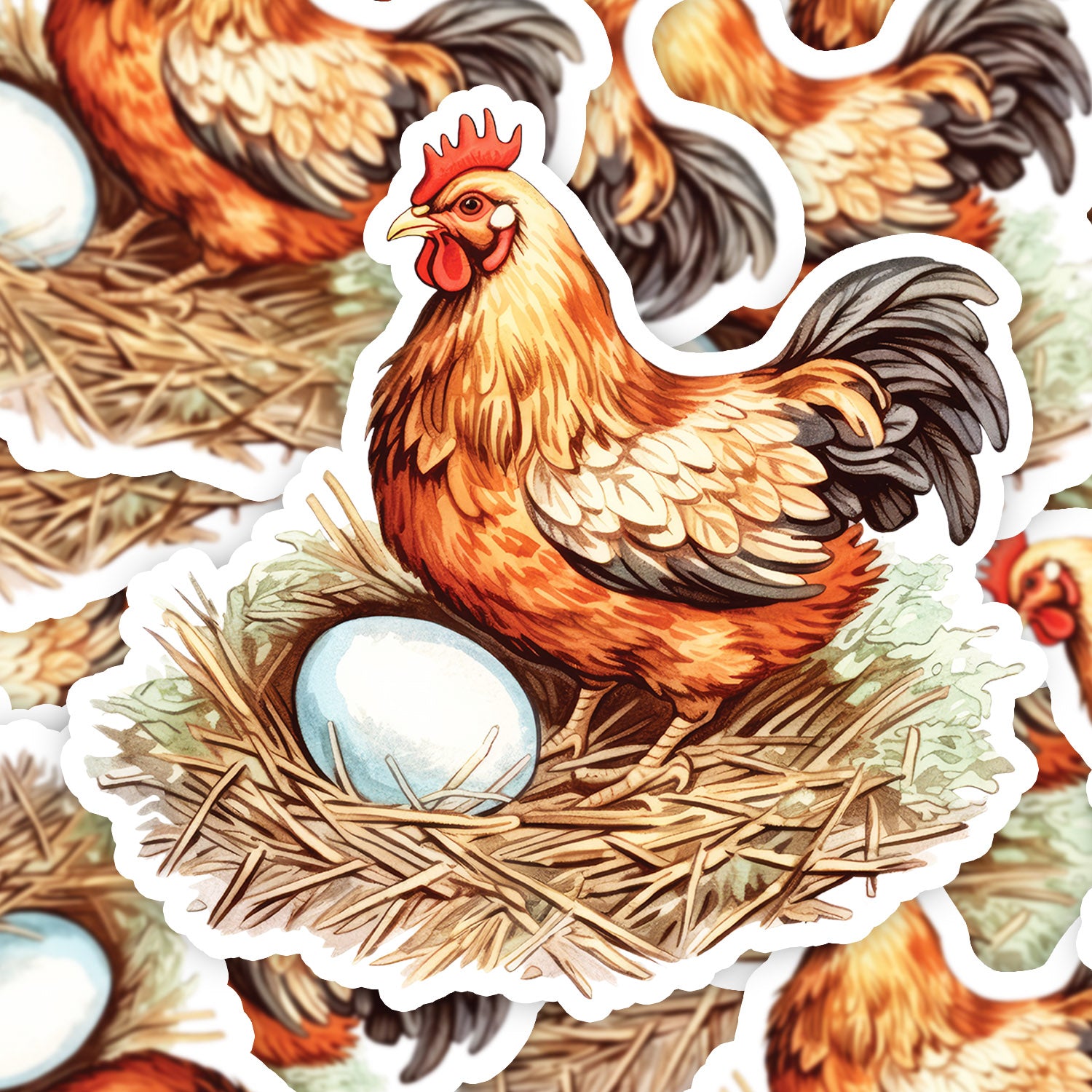 Set 5 bucati, Sticker decorativ, Gaina cu un ou, Rezistent la apa, NO10133, 6 cm, Multicolor