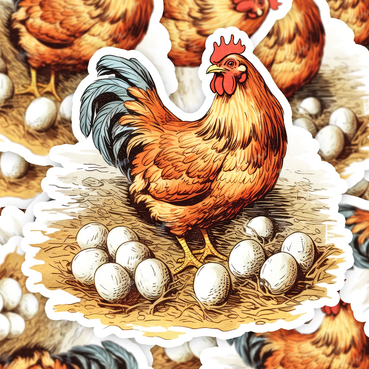 Set 5 bucati, Sticker decorativ, Gaina pazeste ouale, Rezistent la apa, NO13352, 6 cm, Multicolor