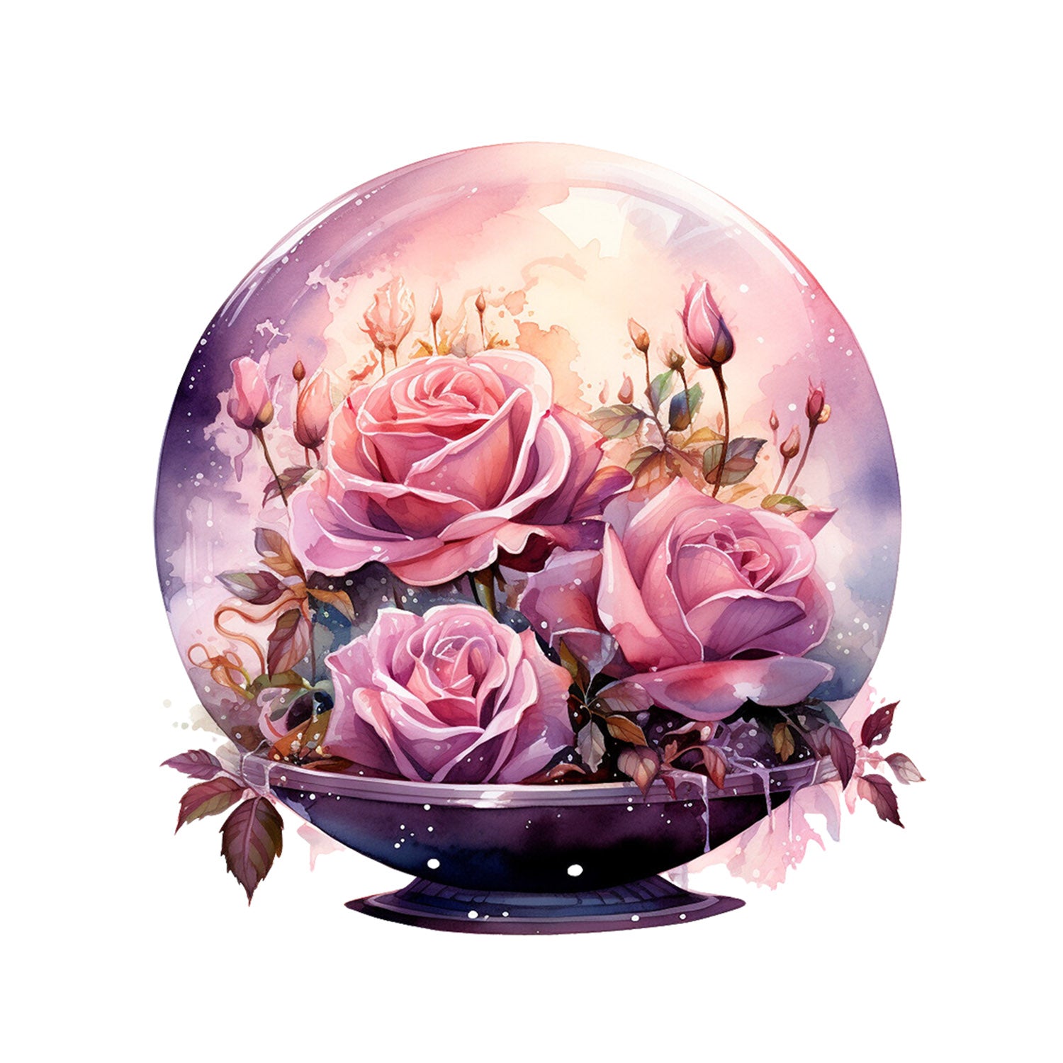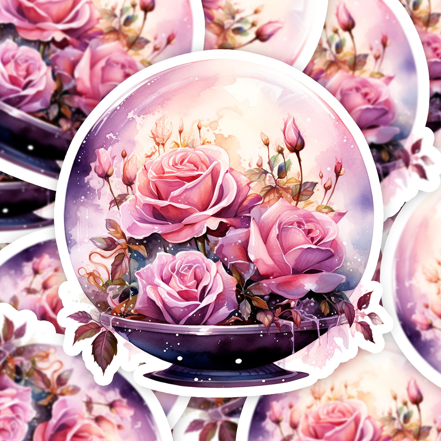 Set 5 bucati, Sticker decorativ, Globul de cristal cu trandafiri roz, Rezistent la apa, NO12845, 6 cm, Multicolor