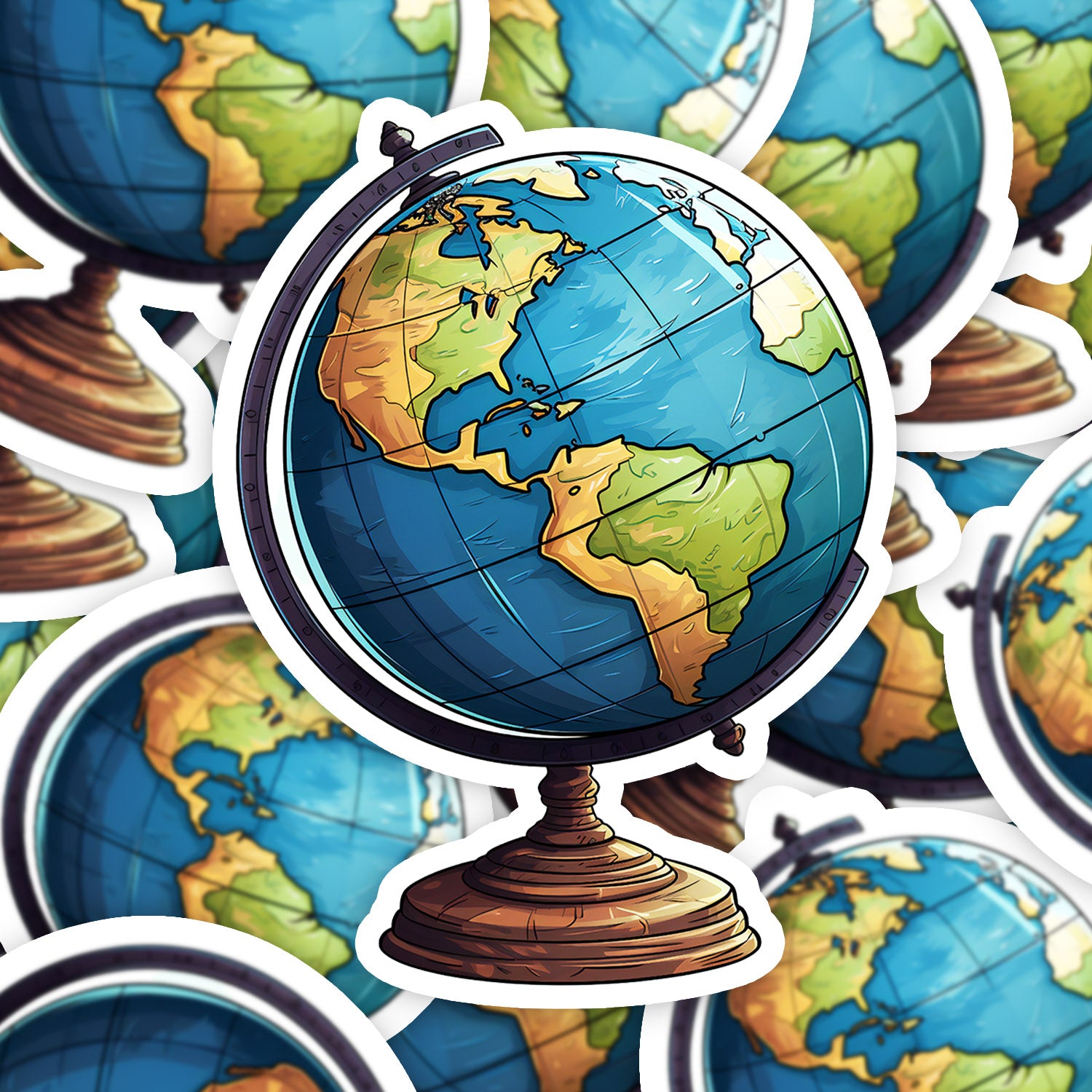 Set 5 bucati, Sticker decorativ, Globul pamantesc, Rezistent la apa, NO13426, 6 cm, Multicolor