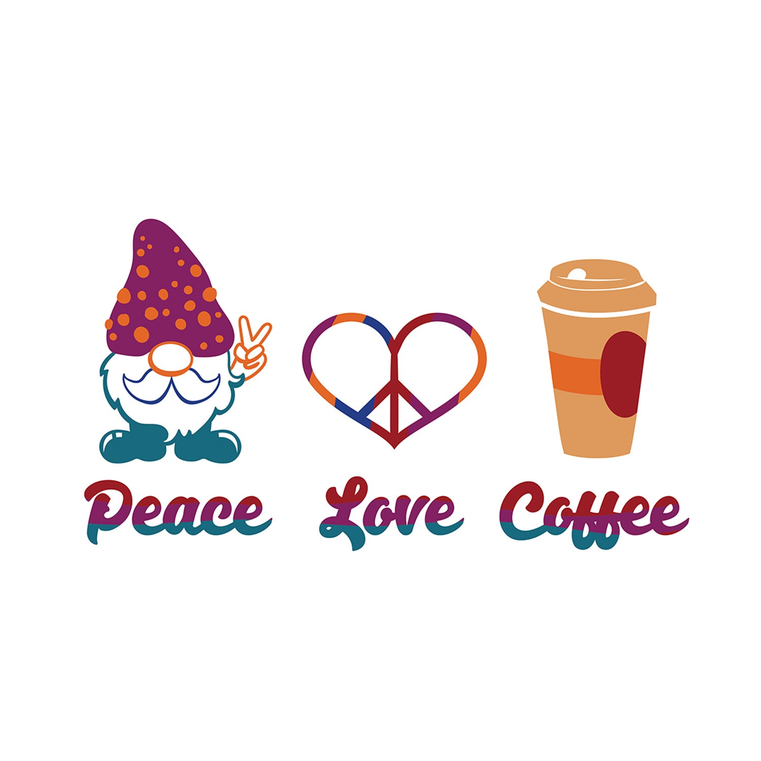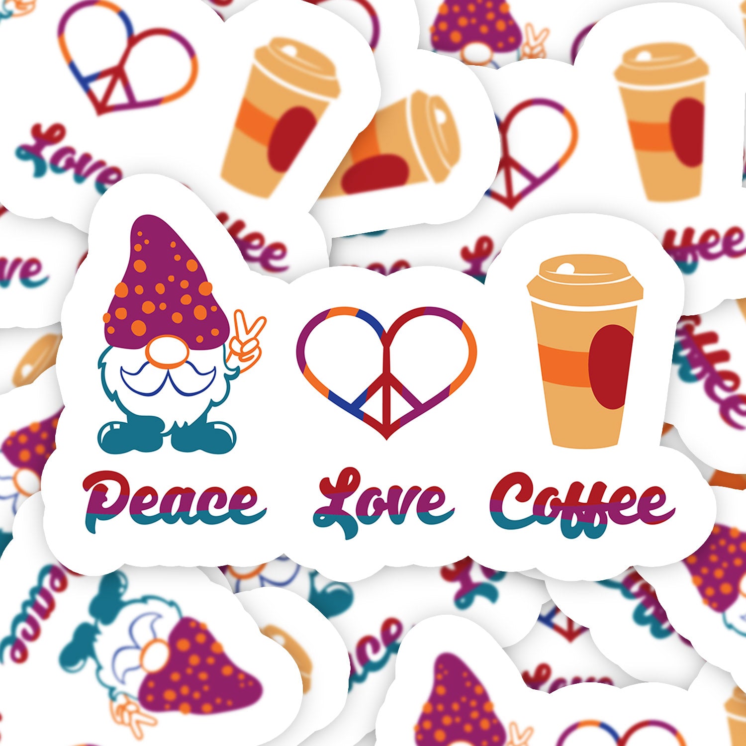Set 5 bucati, Sticker decorativ, Gnomul peace love coffee, Rezistent la apa, NO15377, 6 cm, Multicolor