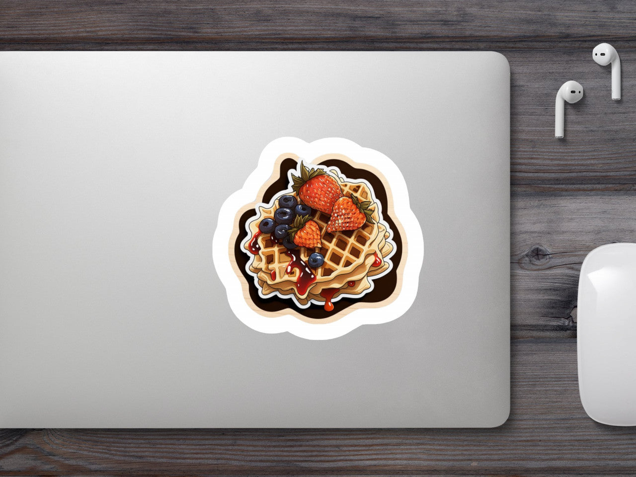Set 5 bucati, Sticker decorativ, Gofre crocante cu ciocolata si fructe, Rezistent la apa, NO9458, 6 cm, Multicolor