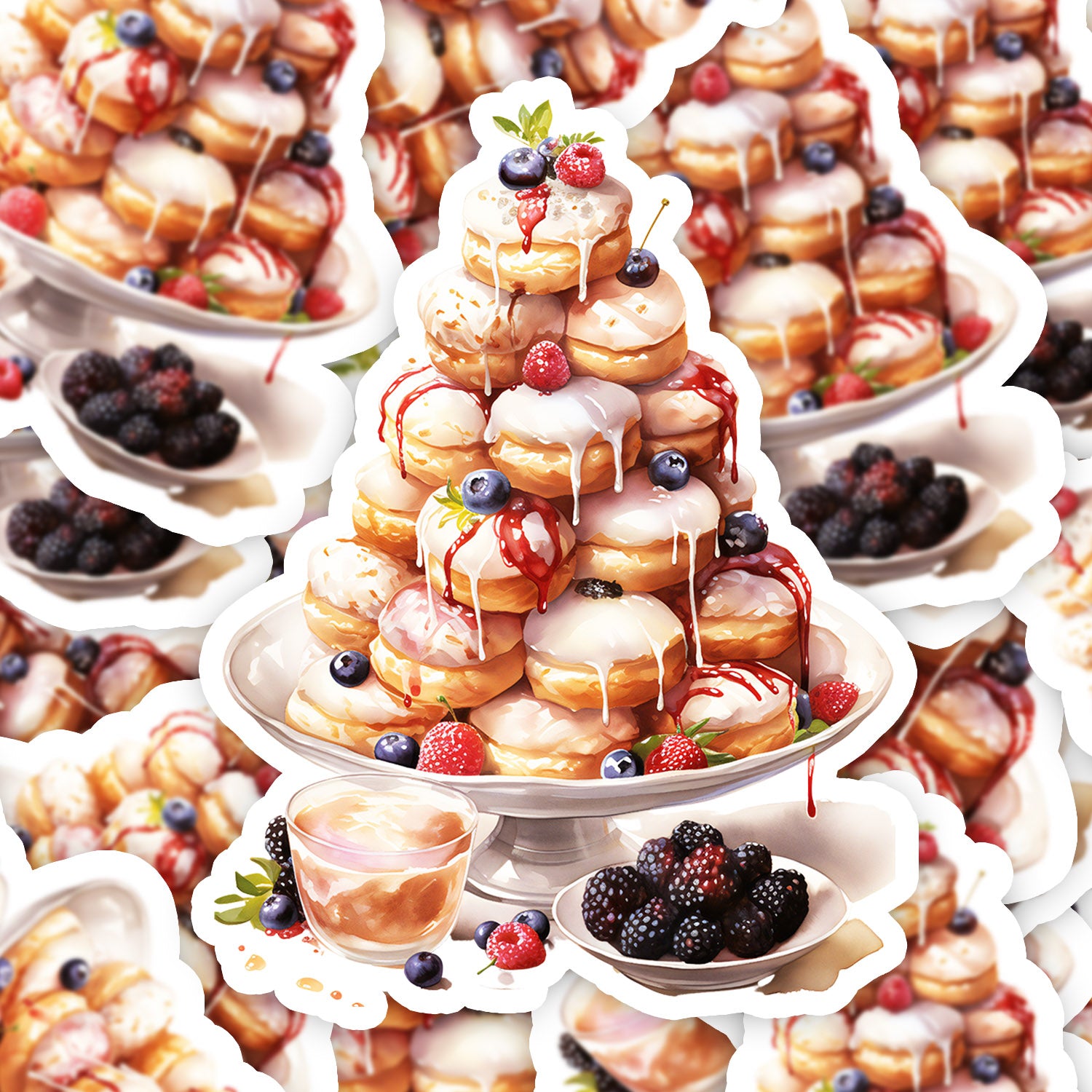 Set 5 bucati, Sticker decorativ, Gogosi cu glazura si fructe, Rezistent la apa, NO11049, 6 cm, Multicolor
