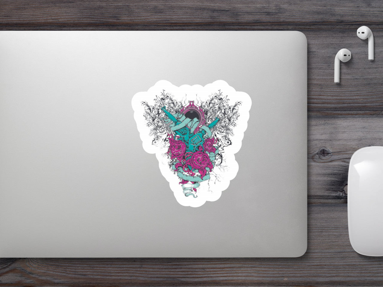 Set 5 bucati, Sticker decorativ, Guns and Roses, Rezistent la apa, NO9533, 6 cm, Multicolor