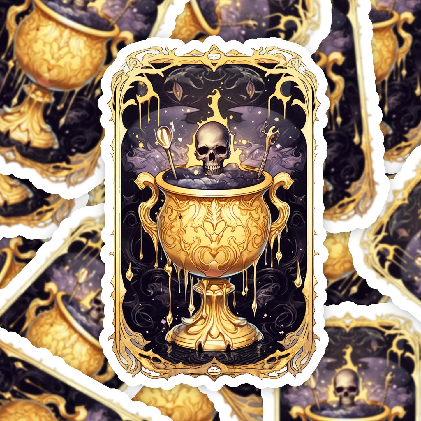 Set 5 bucati, Sticker decorativ, Halloween Tarot Pocalul cu otrava, Rezistent la apa, NO11285, 6 cm, Multicolor