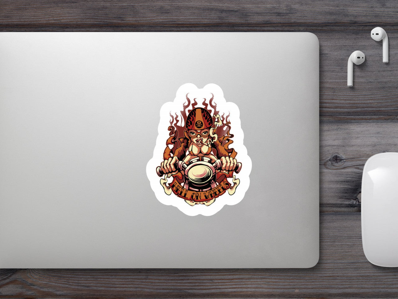 Set 5 bucati, Sticker decorativ, Hell on wheels, Rezistent la apa, NO9603, 6 cm, Multicolor