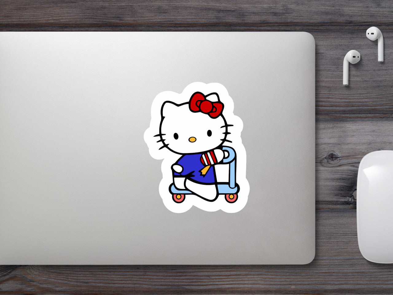 Set 5 bucati, Sticker decorativ, Hello Kitty pe scooter, Rezistent la apa, NO9643, 6 cm, Multicolor