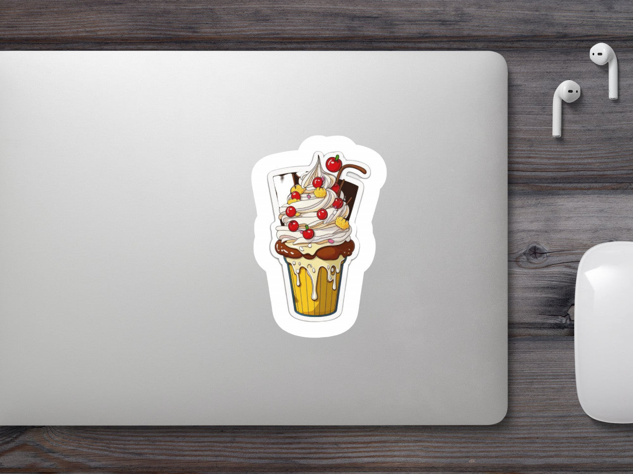 Set 5 bucati, Sticker decorativ, Inghetata cu sfisca si fructe, Rezistent la apa, NO9754, 6 cm, Multicolor