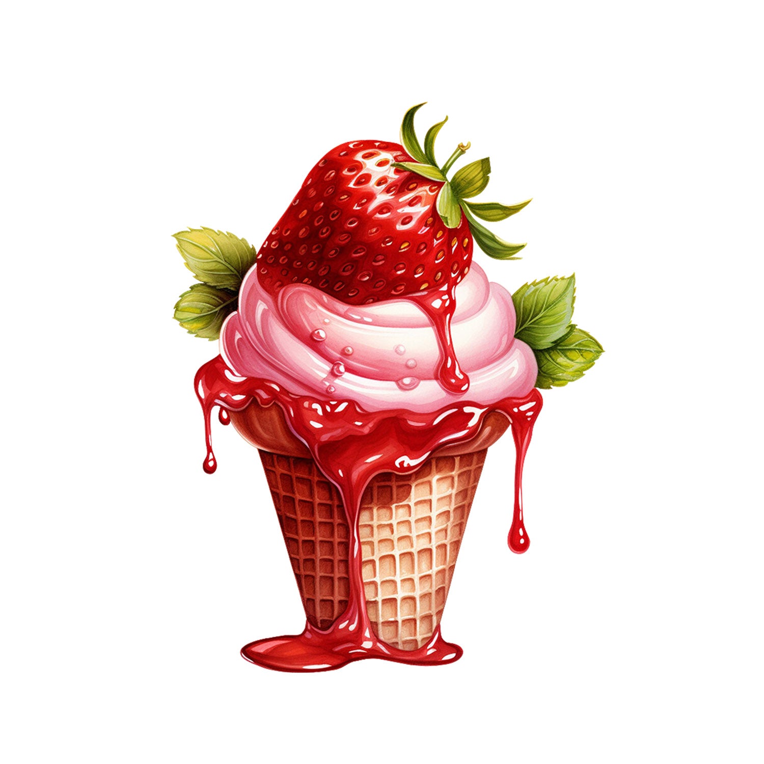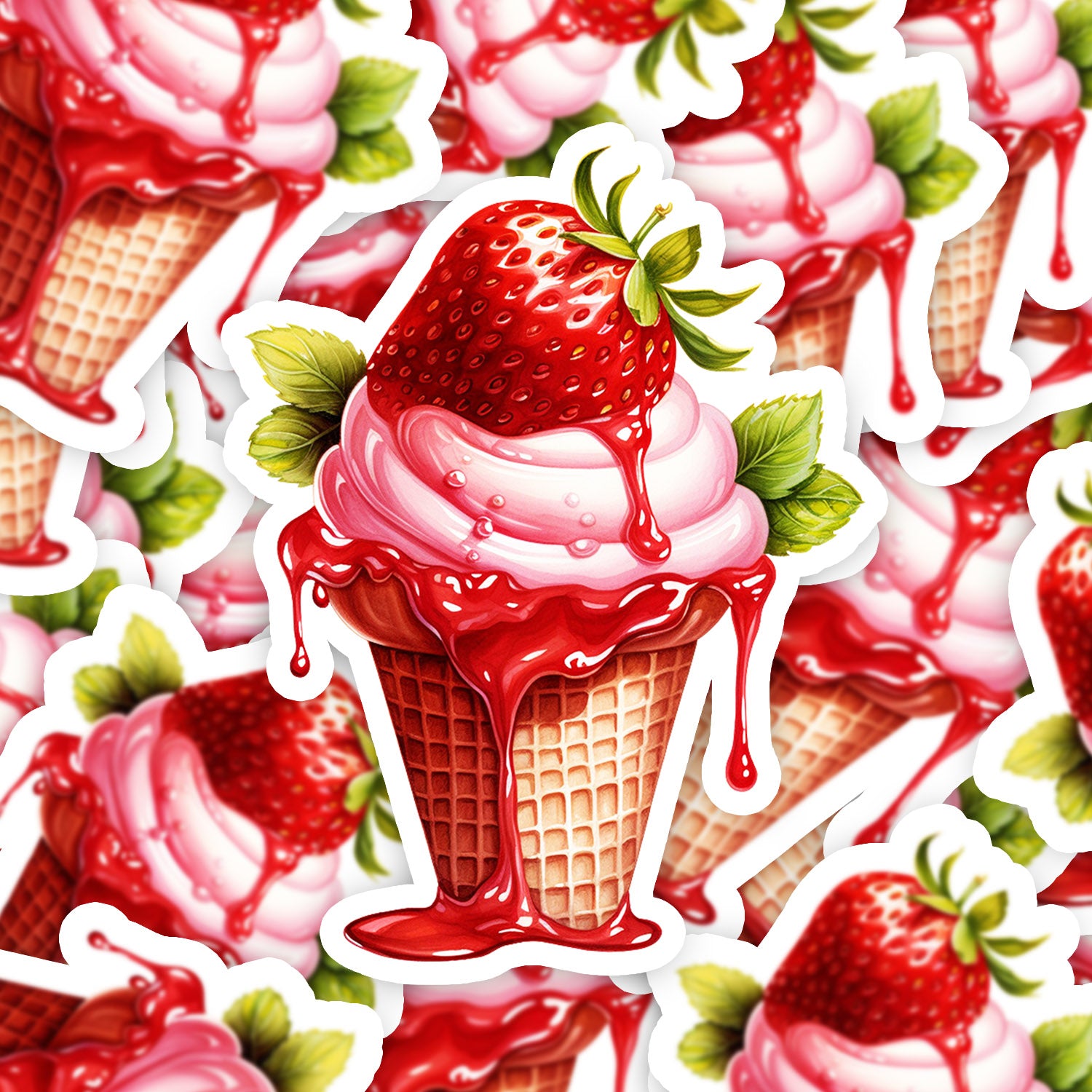 Set 5 bucati, Sticker decorativ, Inghetata cu topping de capsune, Rezistent la apa, NO13756, 6 cm, Multicolor