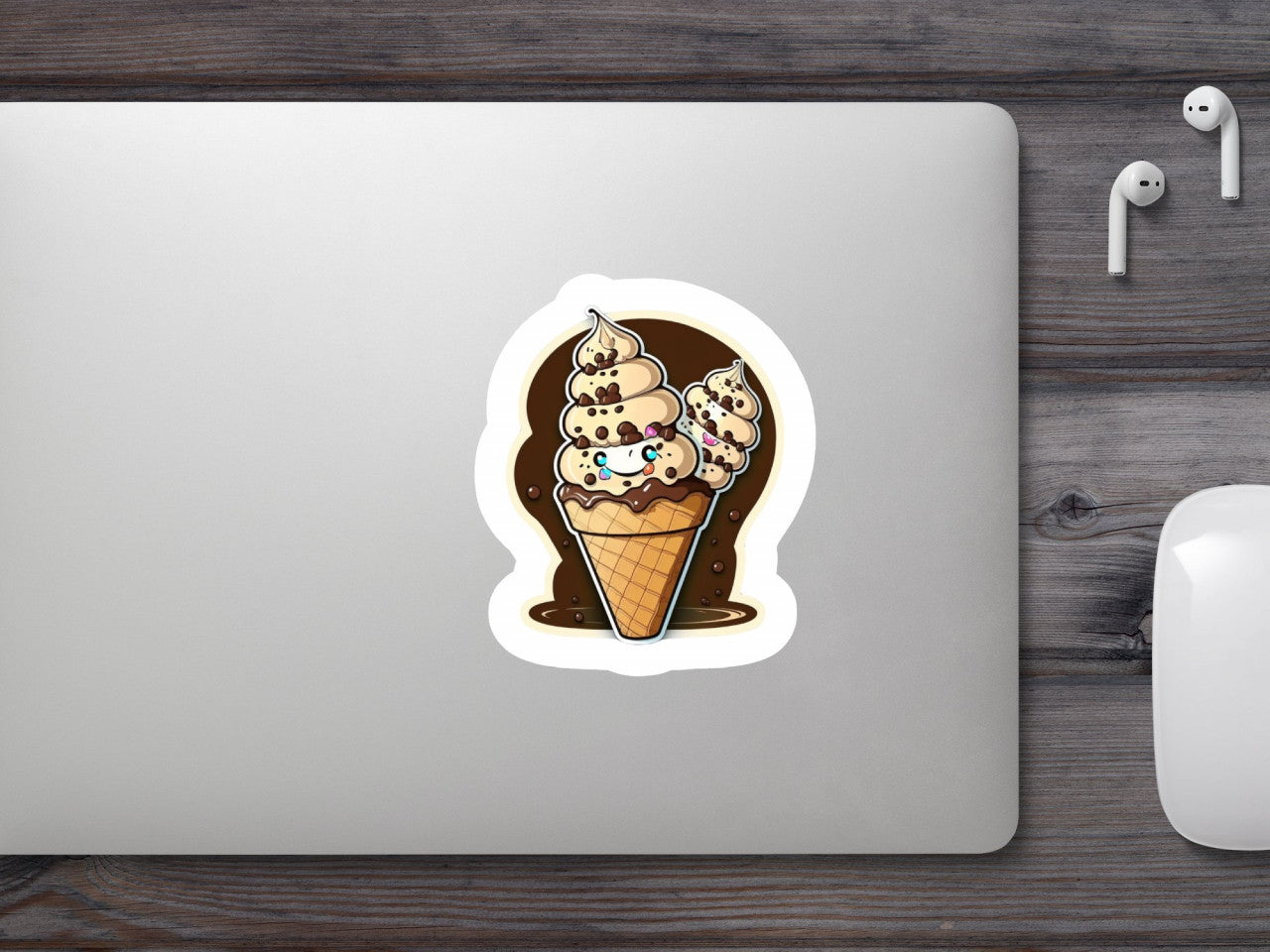Set 5 bucati, Sticker decorativ, Inghetate in con de napolitana, Rezistent la apa, NO9760, 6 cm, Multicolor