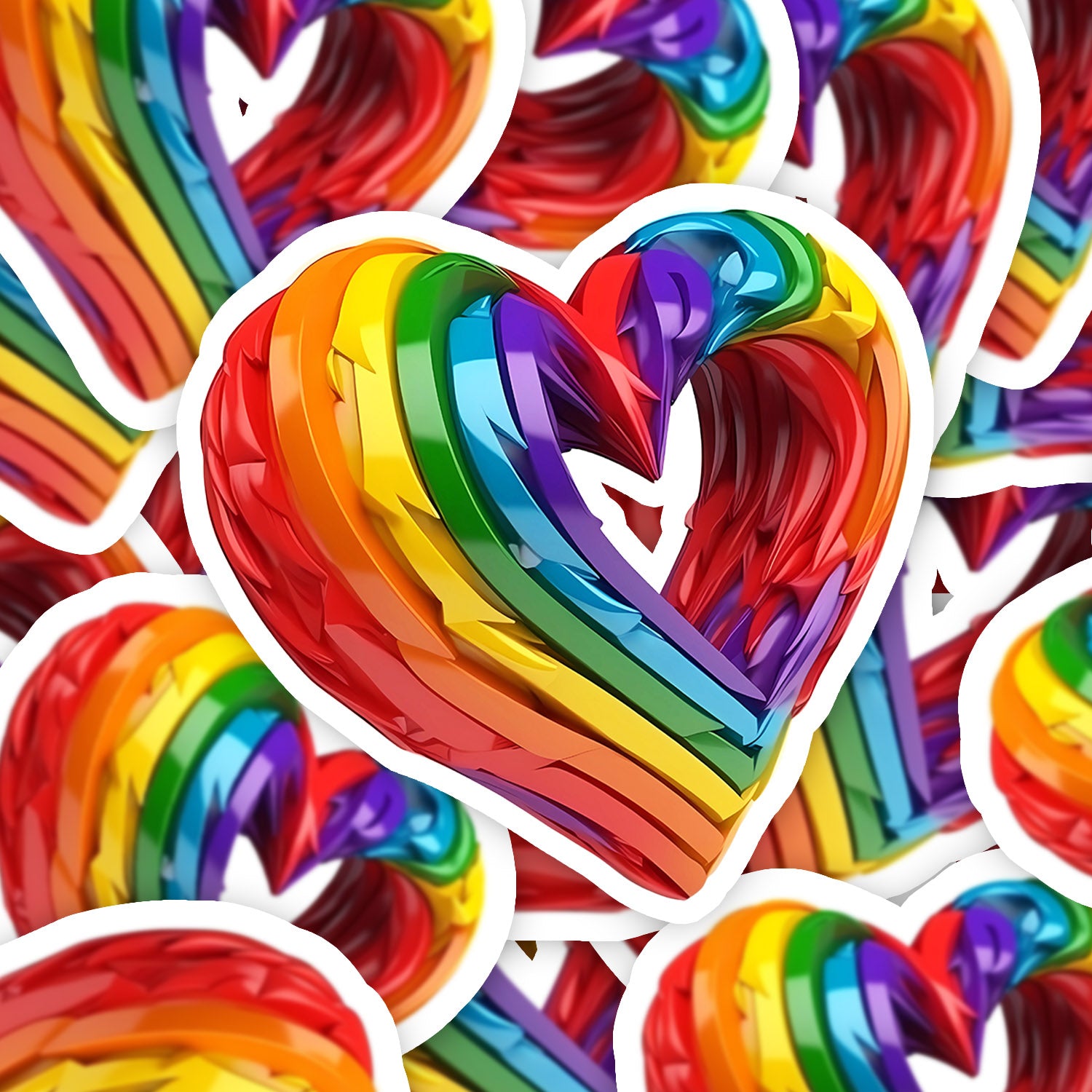 Set 5 bucati, Sticker decorativ, Inima curcubeu Tunelul, Rezistent la apa, NO15550, 6 cm, Multicolor