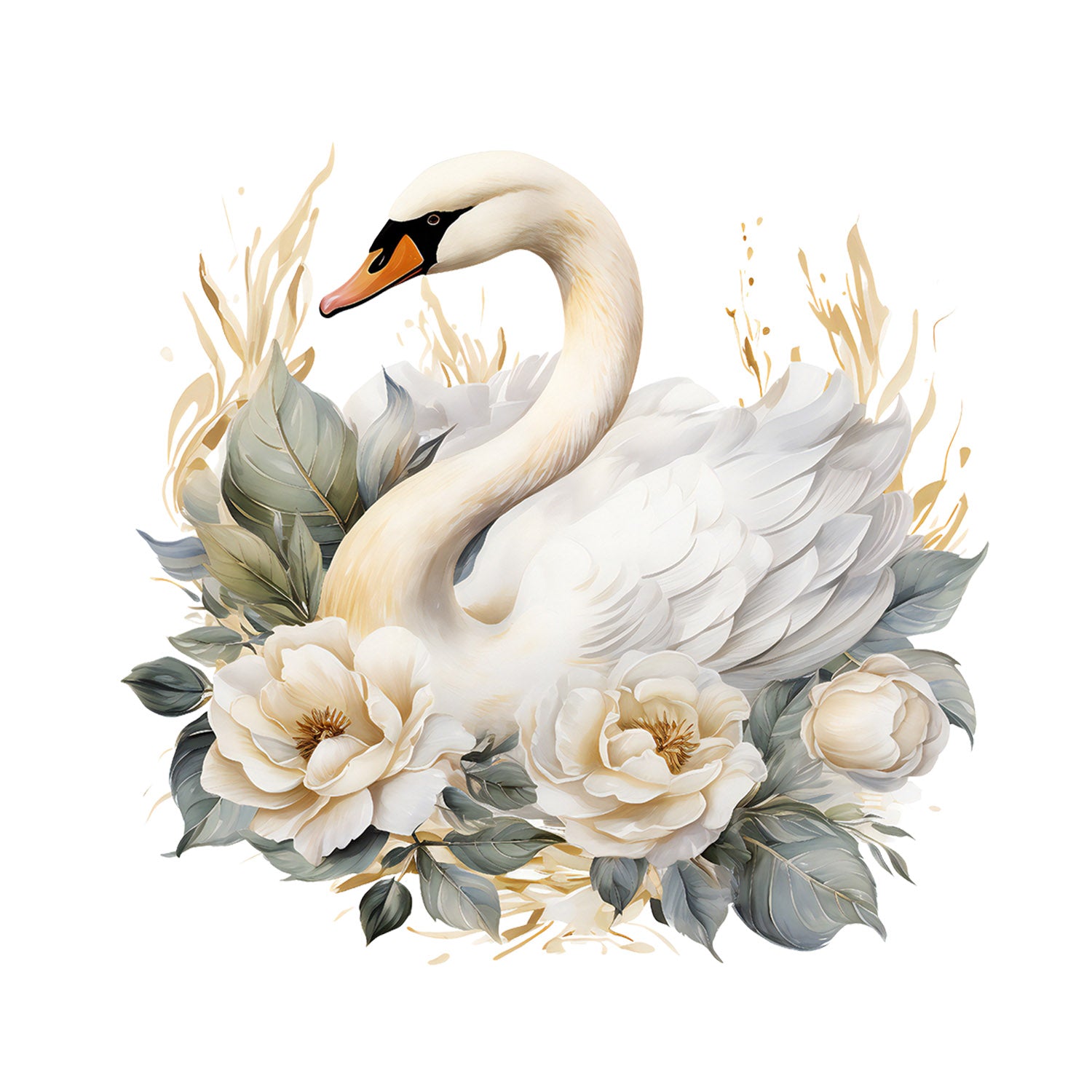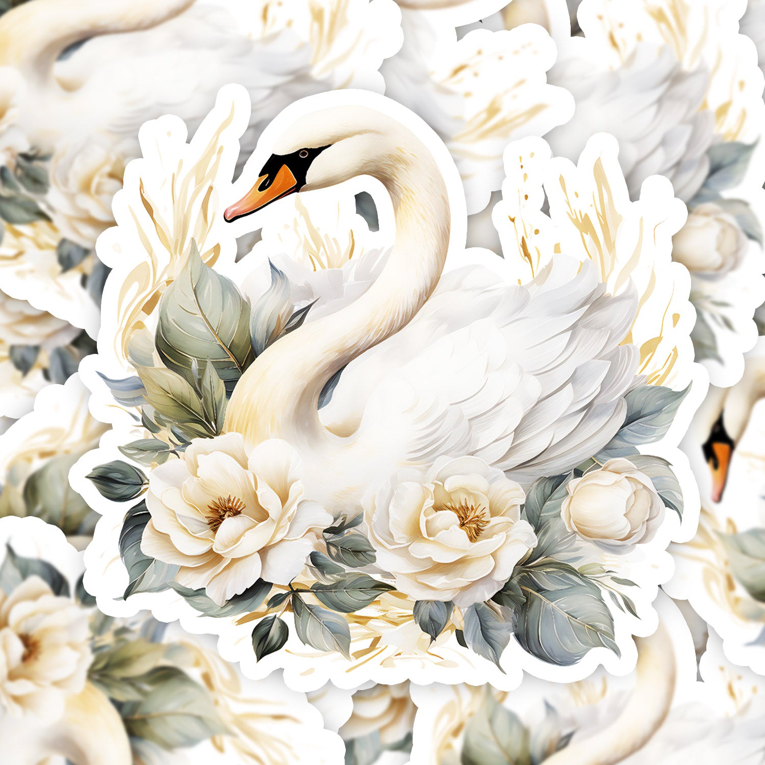 Set 5 bucati, Sticker decorativ, Lebeda alba in trandafiri, Rezistent la apa, NO11276, 6 cm, Multicolor