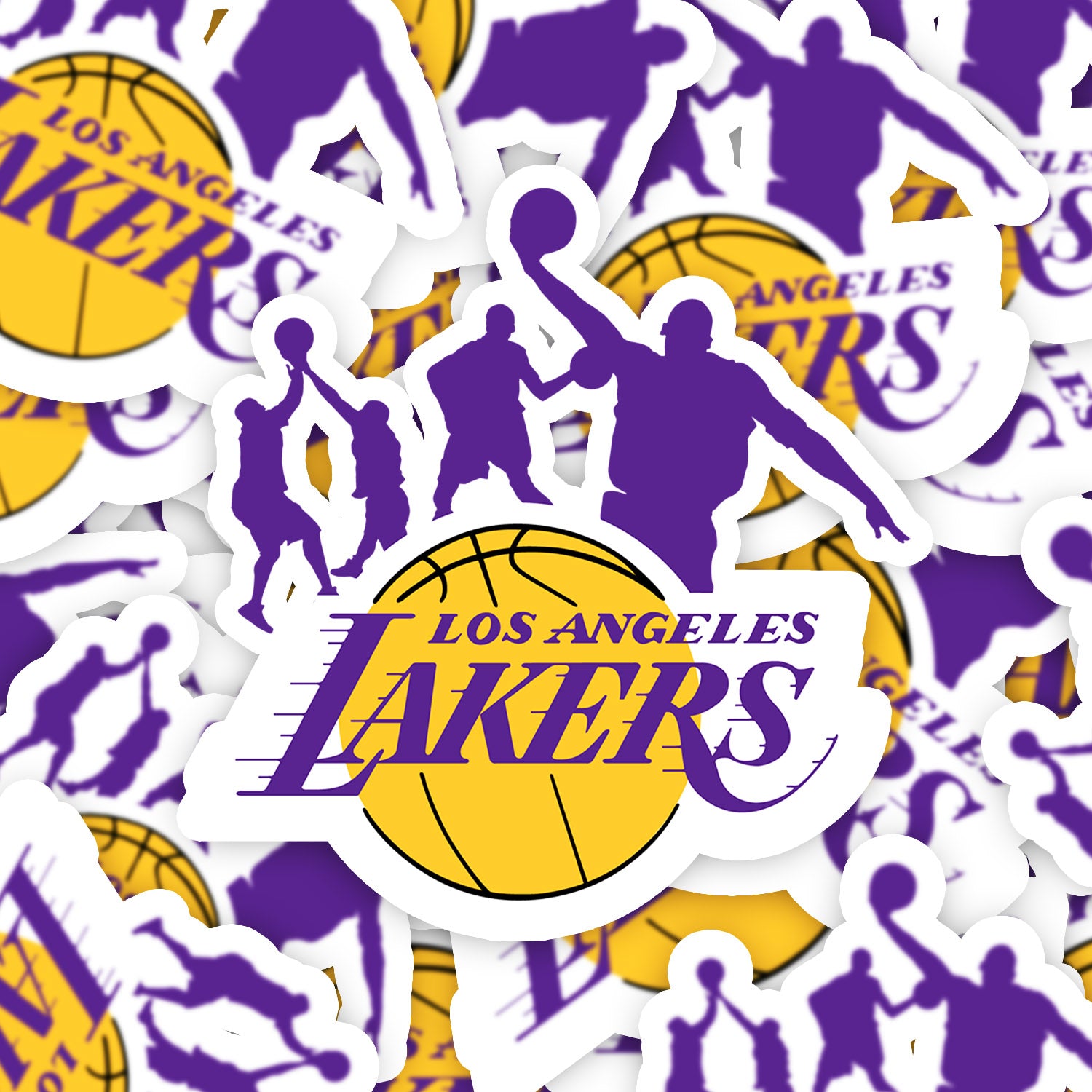 Set 5 bucati, Sticker decorativ, Los Angeles Lakers logo, Rezistent la apa, NO11214, 6 cm, Multicolor