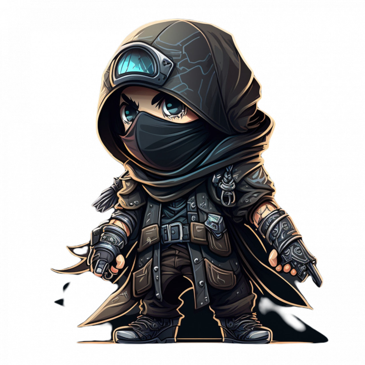 Set 5 bucati, Sticker decorativ, Luptatoare ninja cu cascheta, Rezistent la apa, NO9942, 6 cm, Multicolor