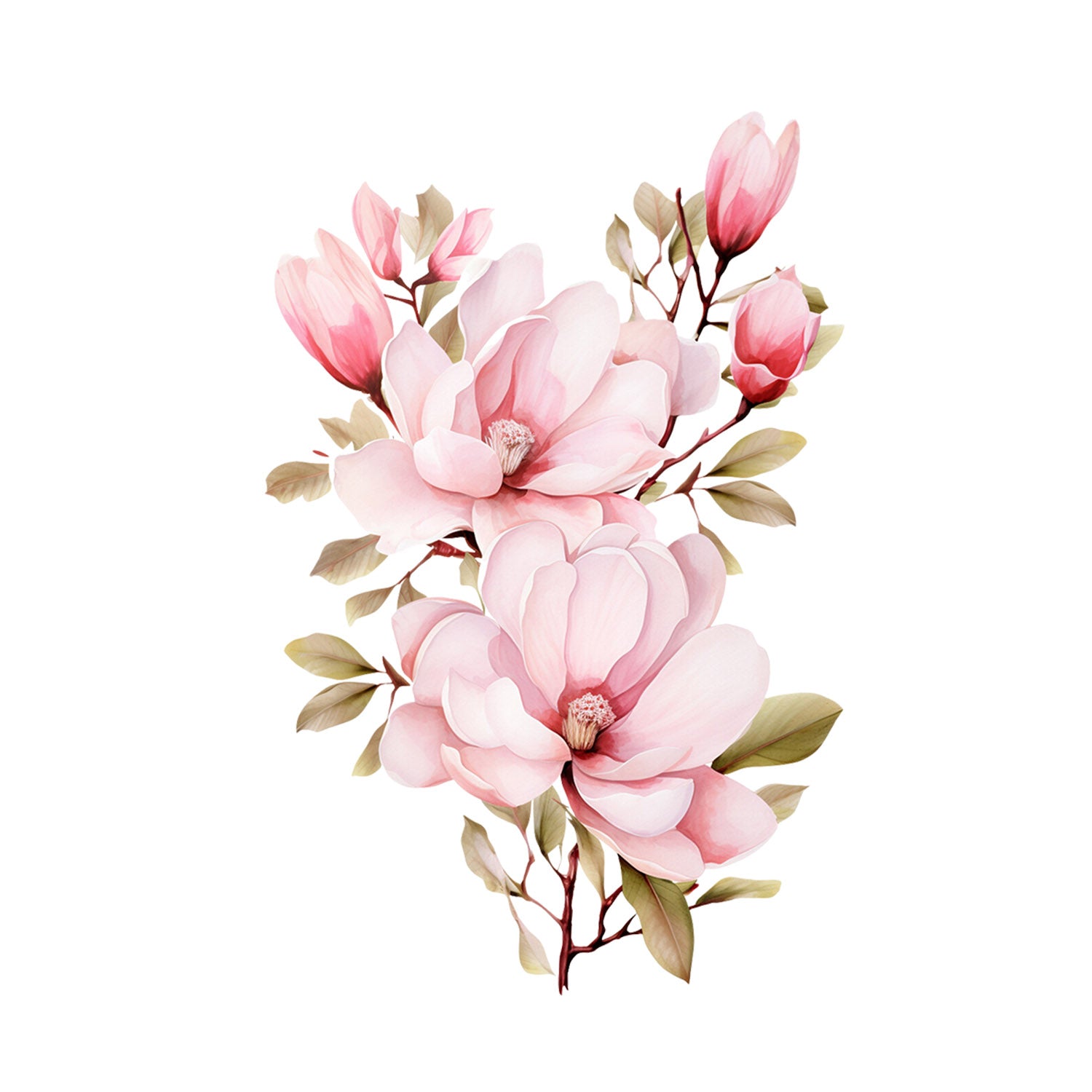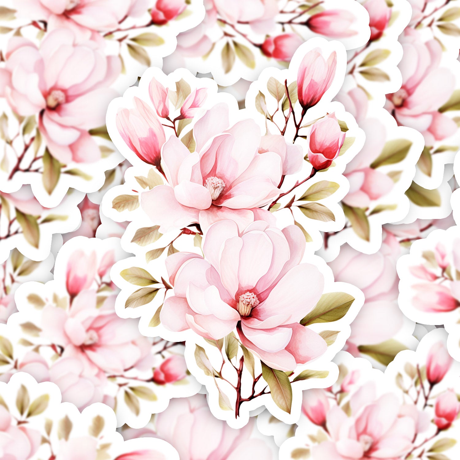 Set 5 bucati, Sticker decorativ, Magnolie, Rezistent la apa, NO12801, 6 cm, Multicolor