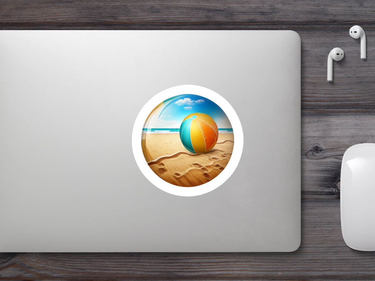 Set 5 bucati, Sticker decorativ, Minge de plaja pe nisip, Rezistent la apa, NO8141, 6 cm, Multicolor