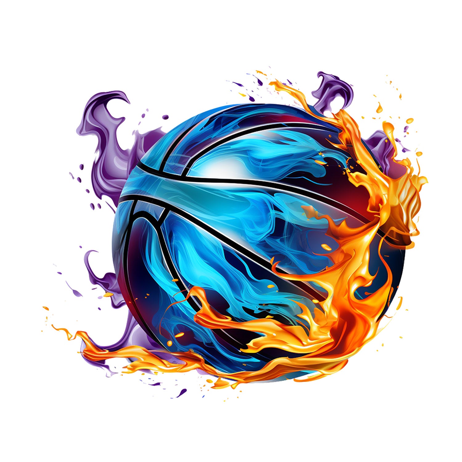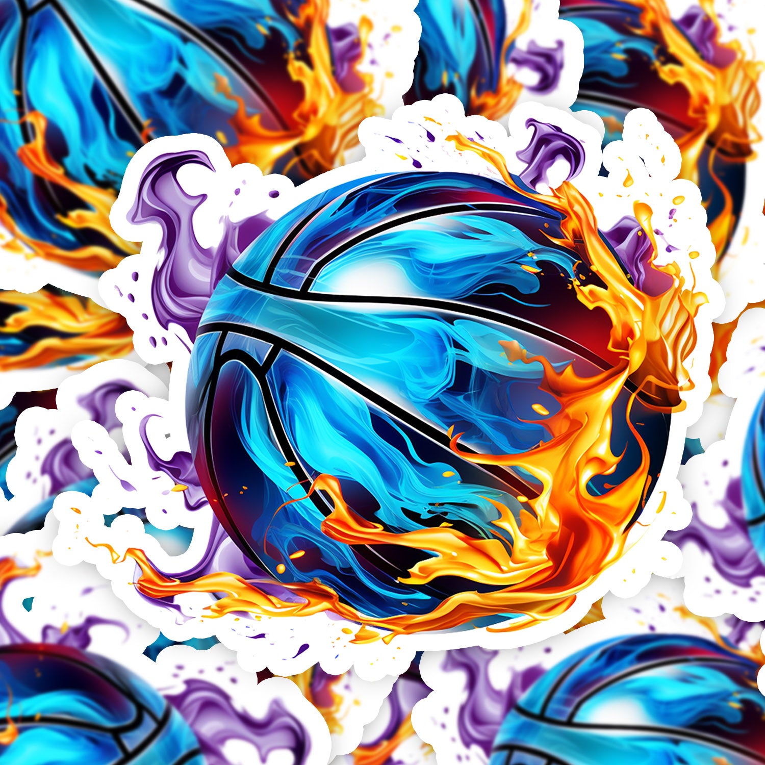 Set 5 bucati, Sticker decorativ, Mingea de baschet Ahura, Rezistent la apa, NO12569, 6 cm, Multicolor
