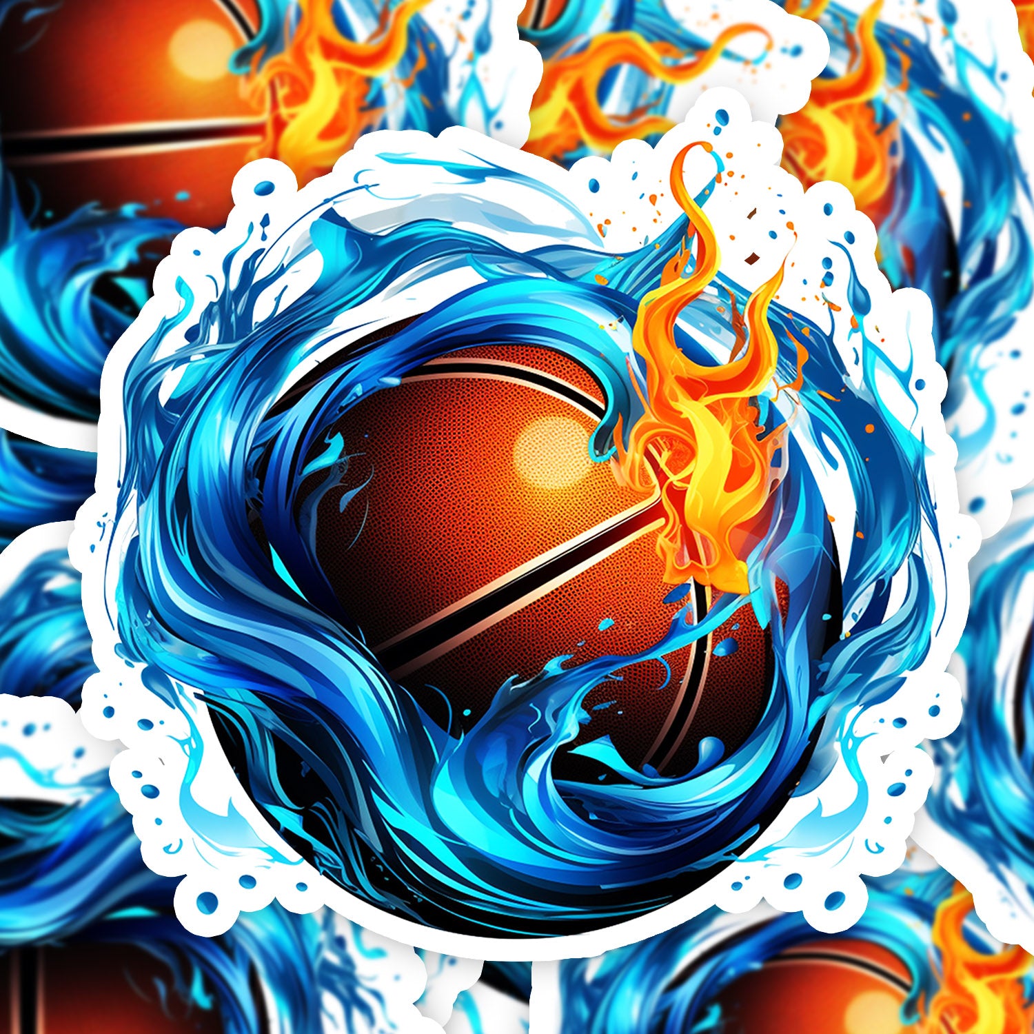 Set 5 bucati, Sticker decorativ, Mingea de baschet Alcides, Rezistent la apa, NO14060, 6 cm, Multicolor