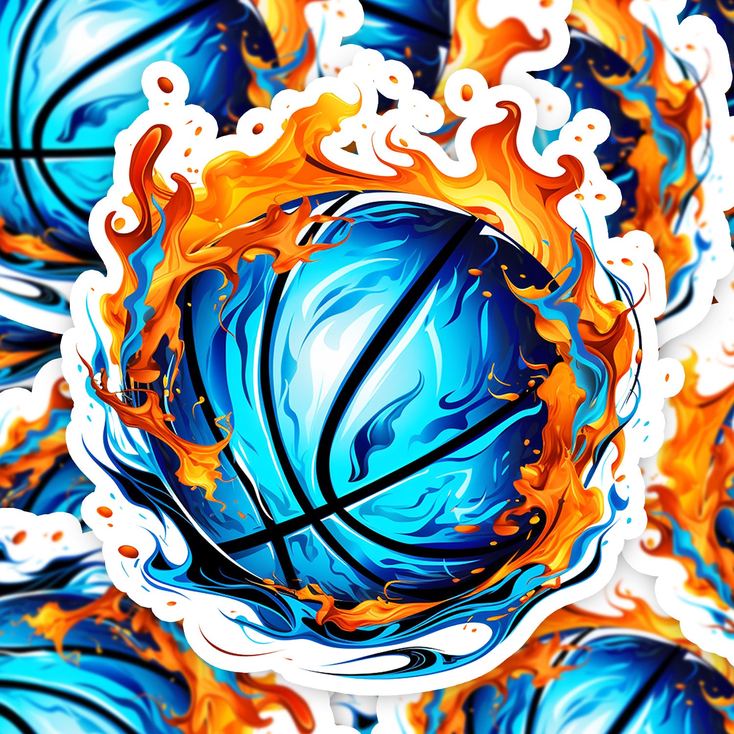 Set 5 bucati, Sticker decorativ, Mingea de baschet Alvis, Rezistent la apa, NO10811, 6 cm, Multicolor