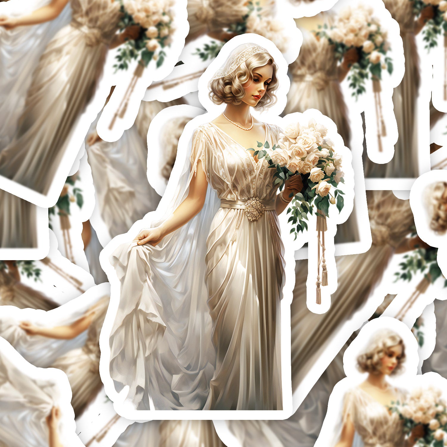 Set 5 bucati, Sticker decorativ, Mireasa Clasica, Rezistent la apa, NO10037, 6 cm, Multicolor
