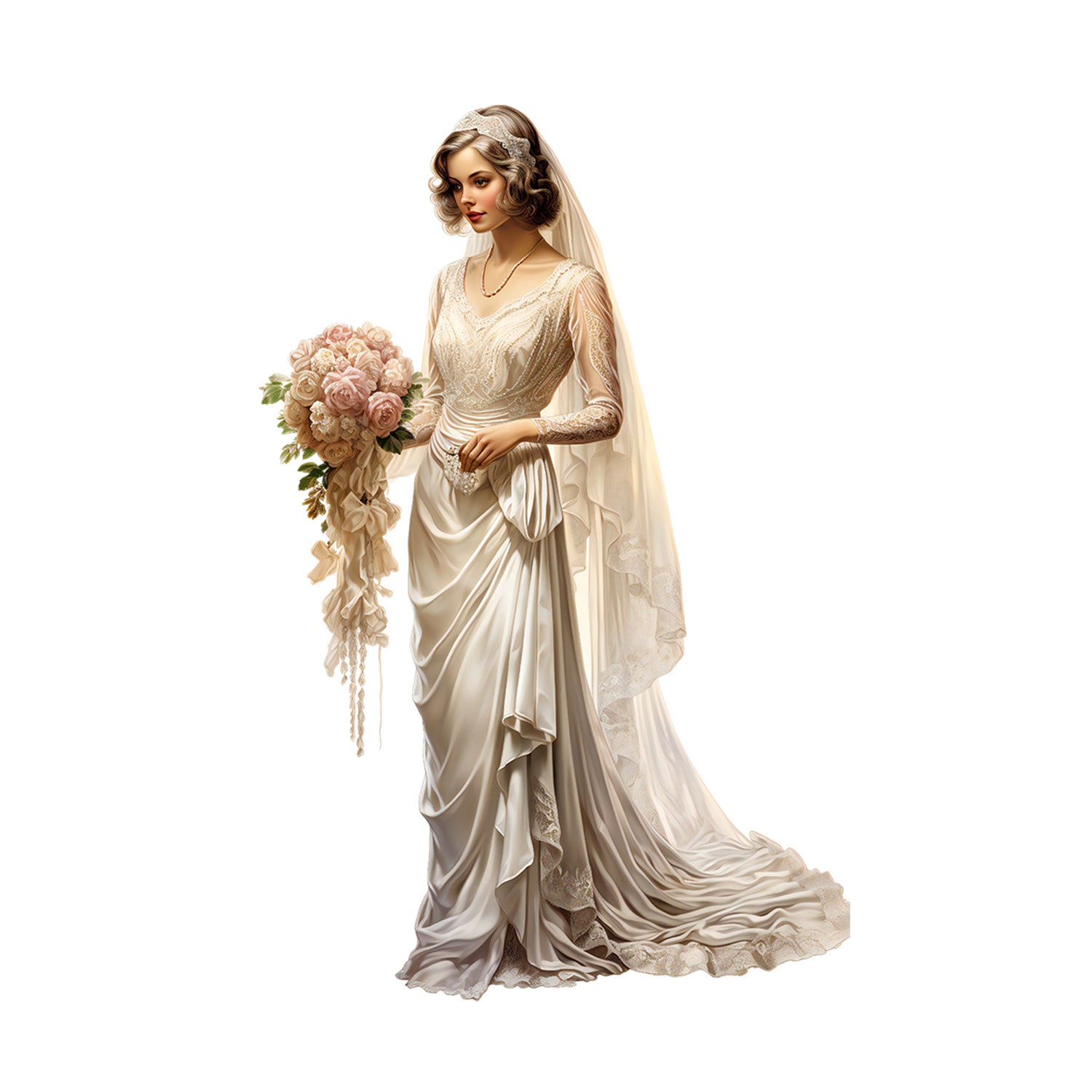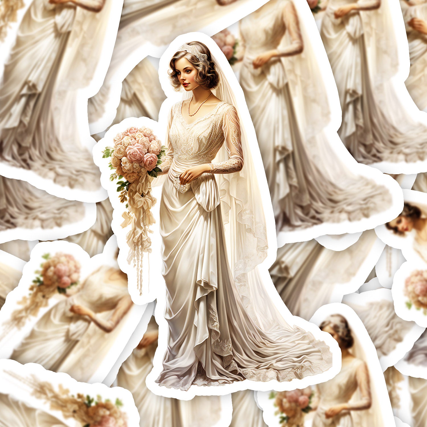 Set 5 bucati, Sticker decorativ, Mireasa Epoca trecuta, Rezistent la apa, NO12248, 6 cm, Multicolor