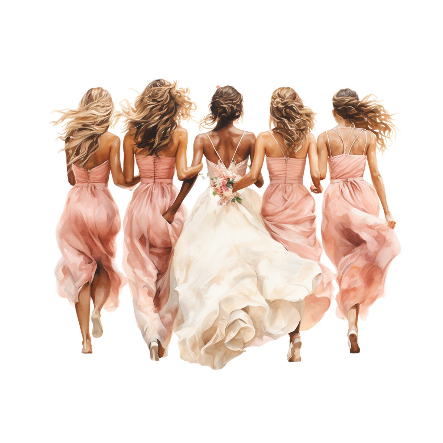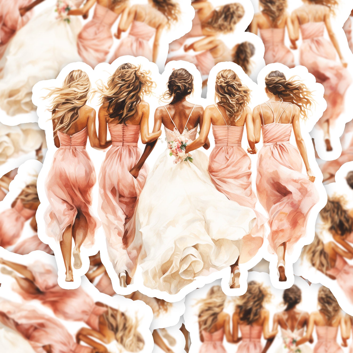 Set 5 bucati, Sticker decorativ, Mireasa si domnisoare de onoare mergand, Rezistent la apa, NO16062, 6 cm, Multicolor
