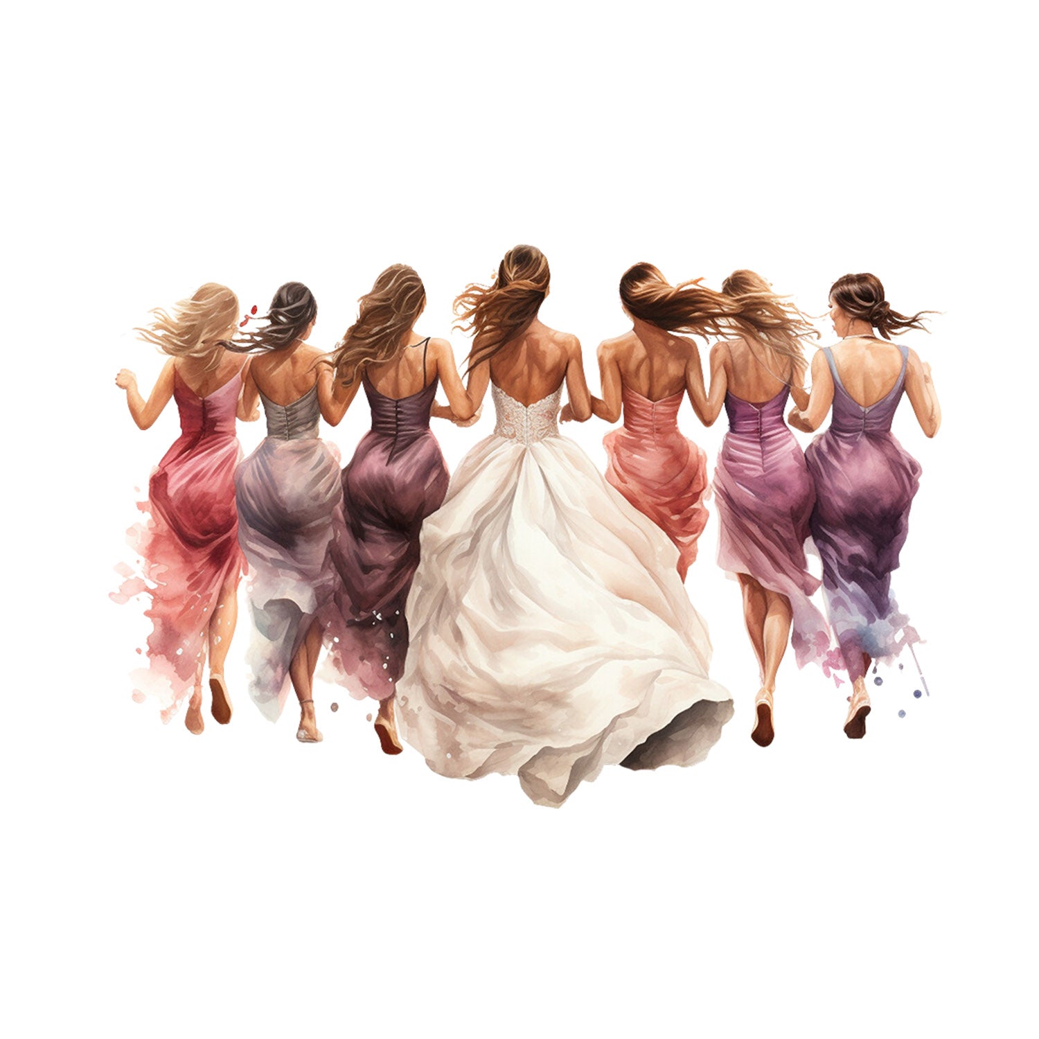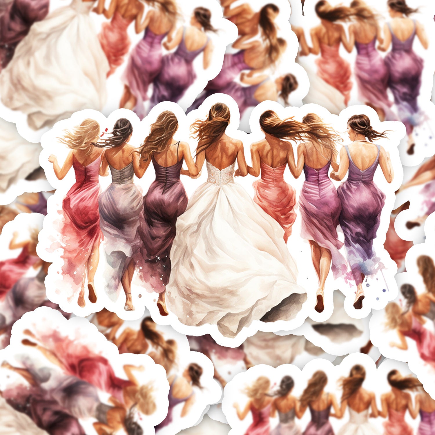 Set 5 bucati, Sticker decorativ, Mireasa si domnisoarele de onoare dansand, Rezistent la apa, NO10469, 6 cm, Multicolor