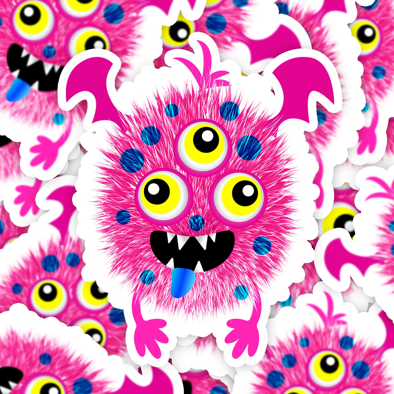 Set 5 bucati, Sticker decorativ, Monster monstrul roz cu trei ochi, Rezistent la apa, NO14698, 6 cm, Multicolor