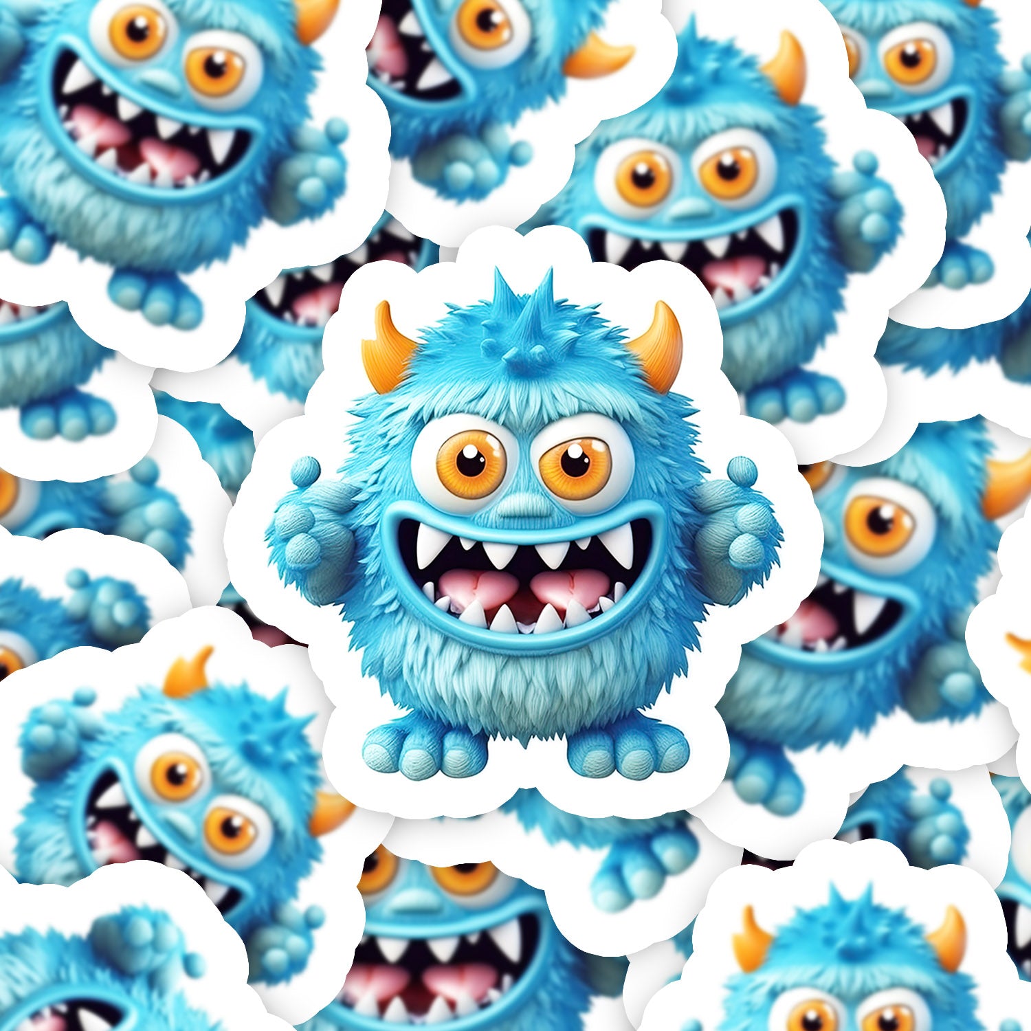 Set 5 bucati, Sticker decorativ, Monstrul Pufy, Rezistent la apa, NO14608, 6 cm, Multicolor