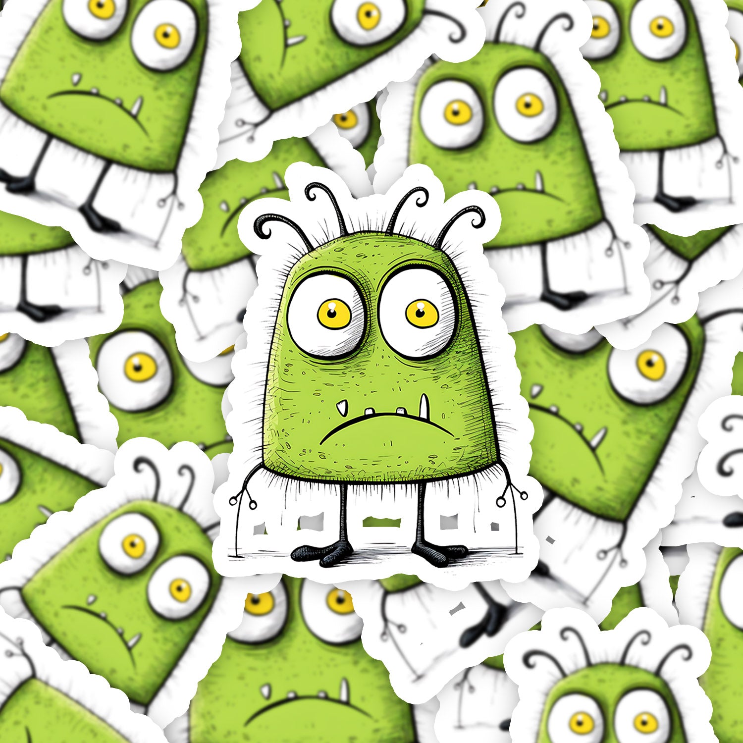 Set 5 bucati, Sticker decorativ, Monstrul verde, Rezistent la apa, NO12069, 6 cm, Multicolor