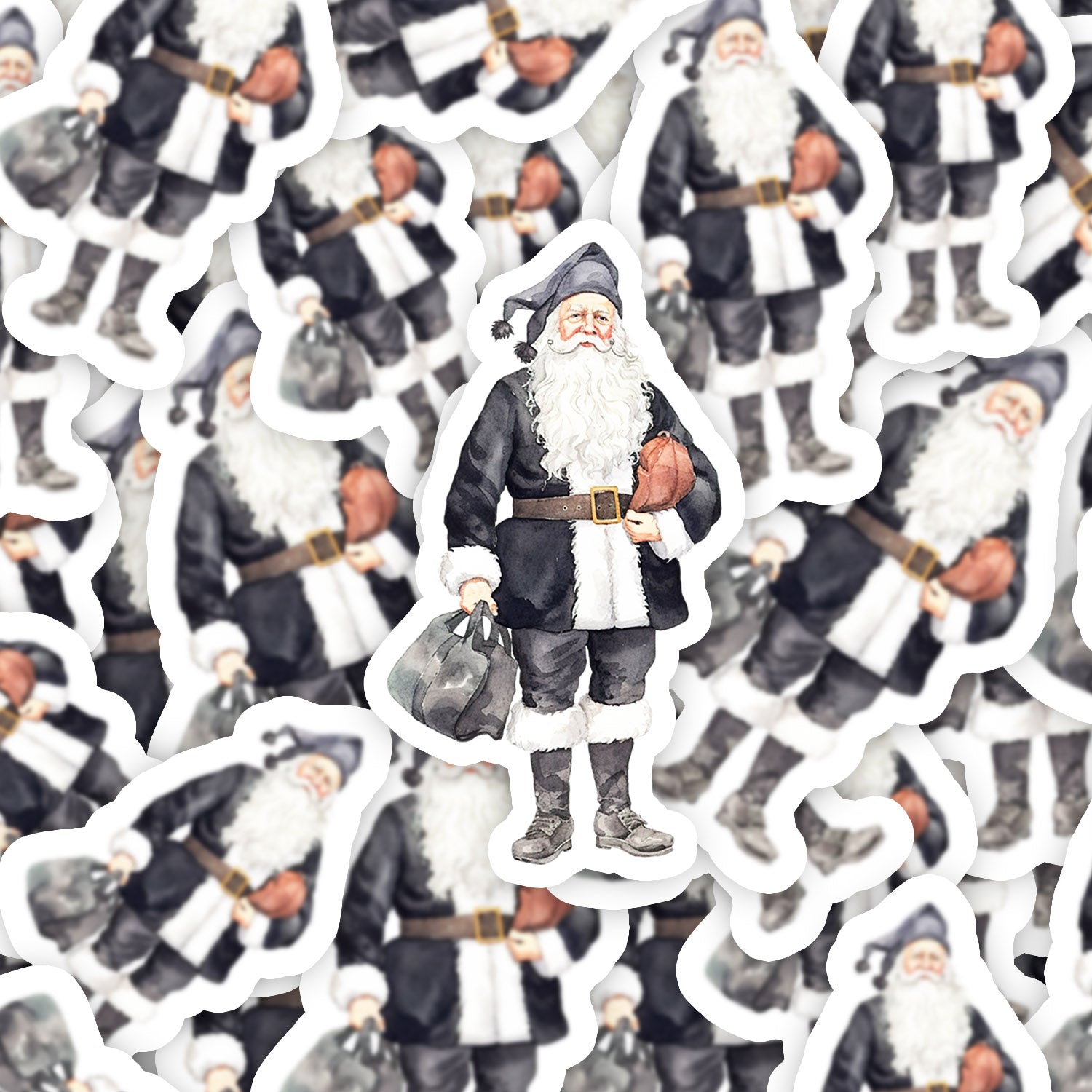 Set 5 bucati, Sticker decorativ, Mos Craciun alb negru, Rezistent la apa, NO14609, 6 cm, Multicolor