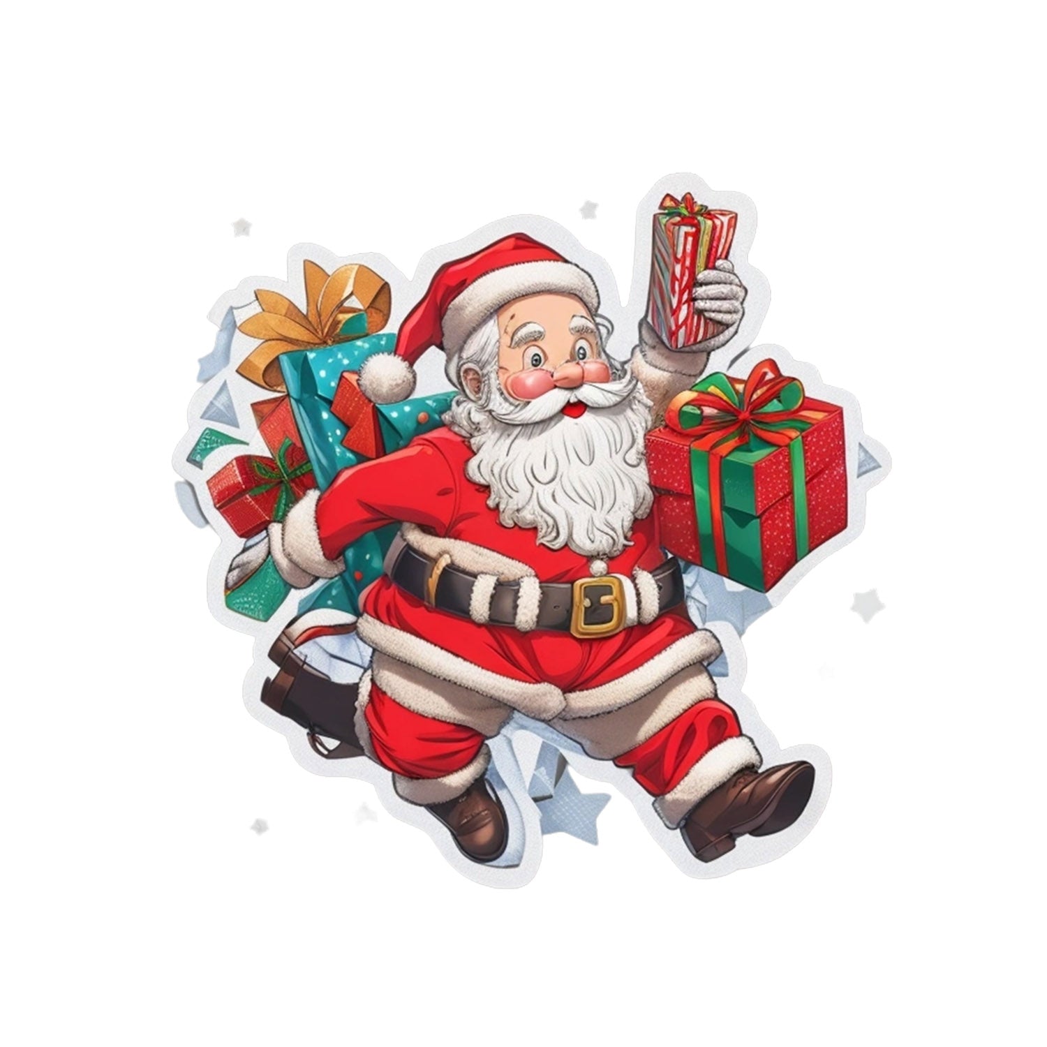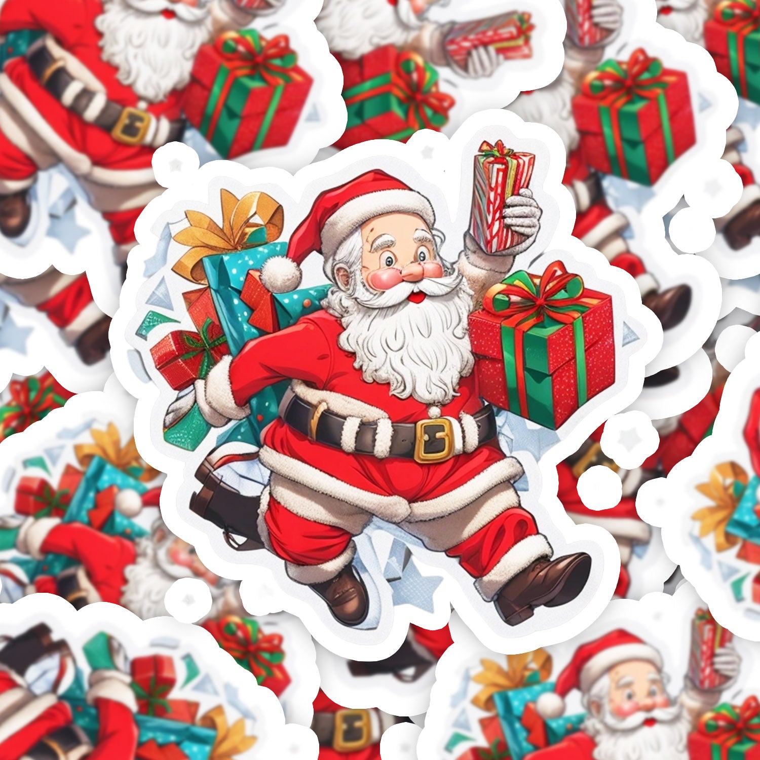 Set 5 bucati, Sticker decorativ, Mos Craciun alearga sa imparta cadouri, Rezistent la apa, NO13554, 6 cm, Multicolor