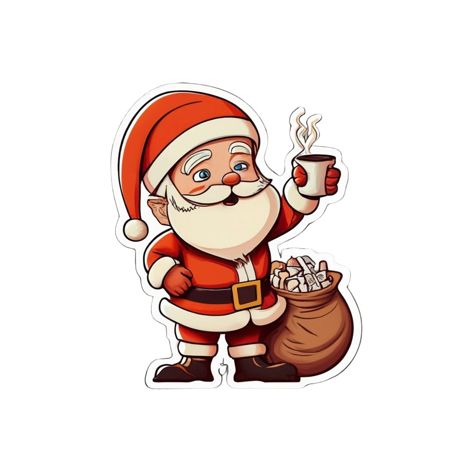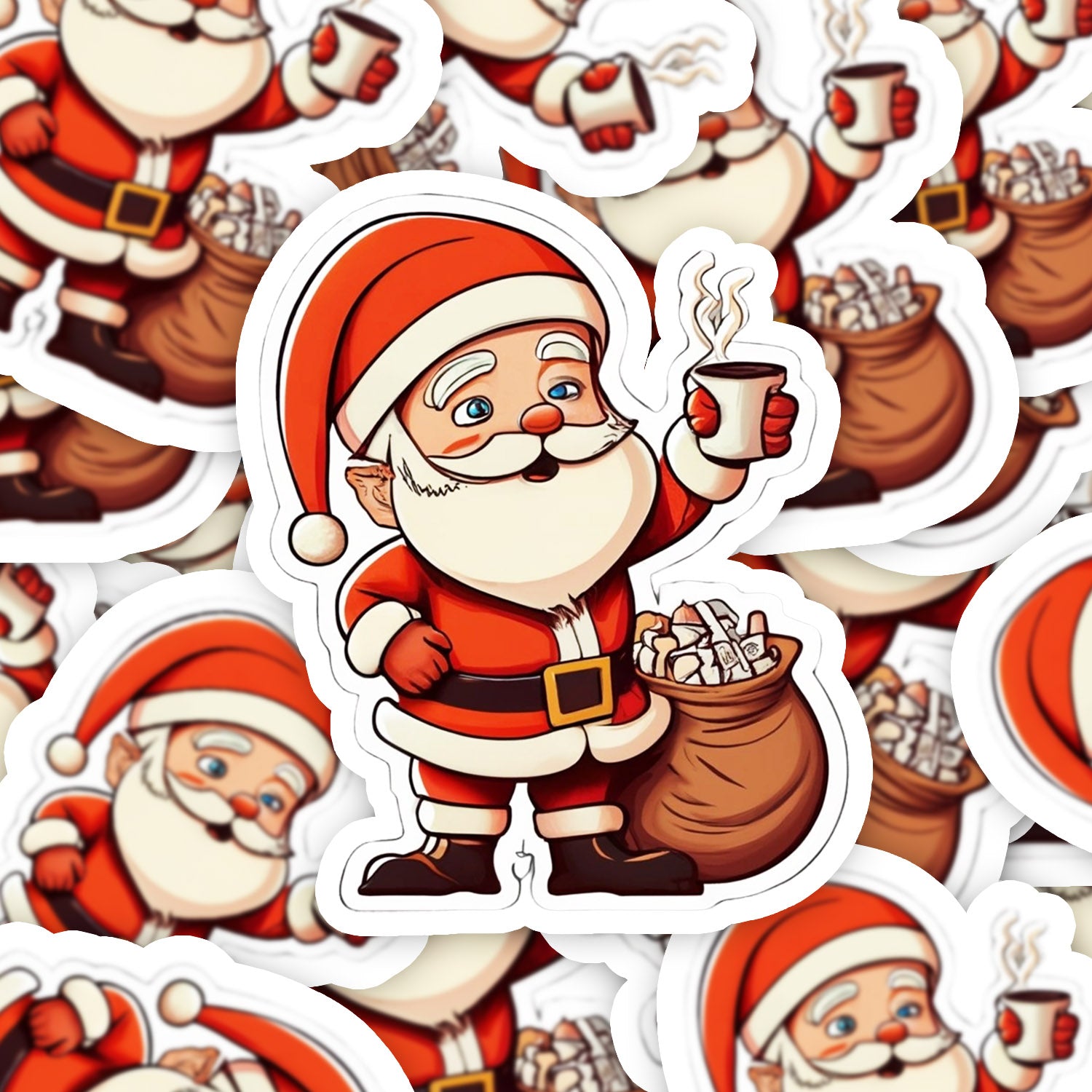 Set 5 bucati, Sticker decorativ, Mos Craciun bea cafea, Rezistent la apa, NO14197, 6 cm, Multicolor